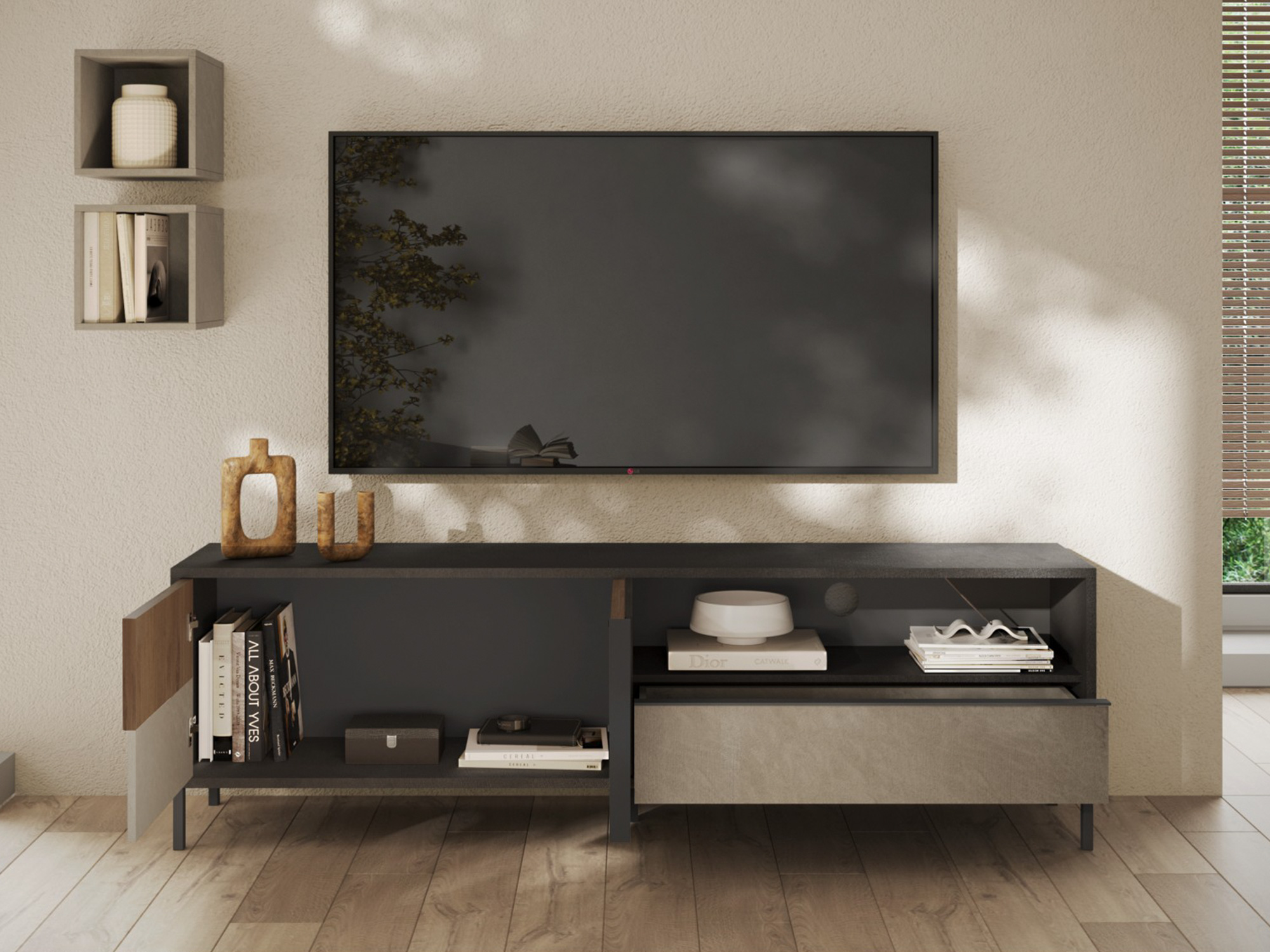 Meuble TV 2 portes et 1 tiroir et 1 niche.