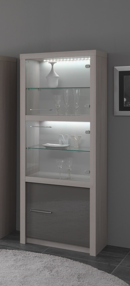 Vitrine 1 porte Fano chene blanchi/laque gris