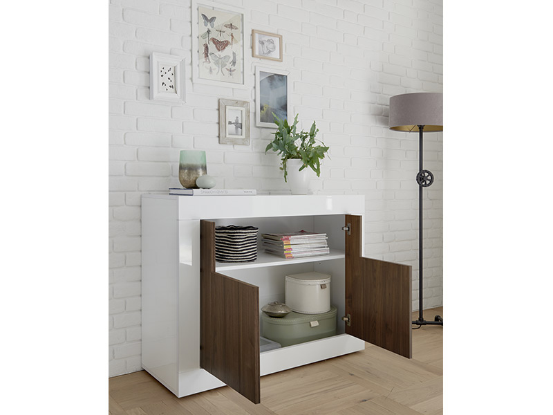 Bahut 2 portes 1 niche Ferrara blanc brillant/noyer
