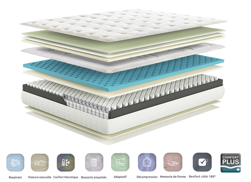 Matelas ressorts ensachés et mousse à mémoire Formentera