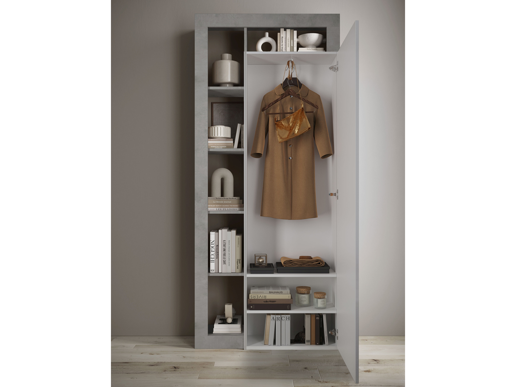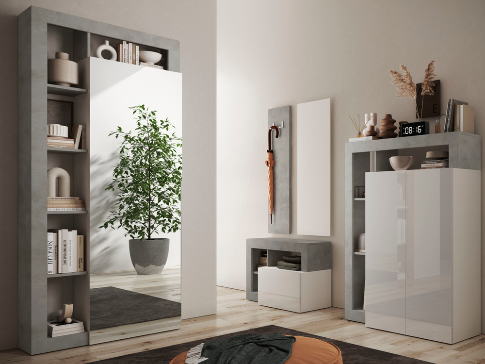 Armoire 1 porte Fribourg blanc brillant/béton