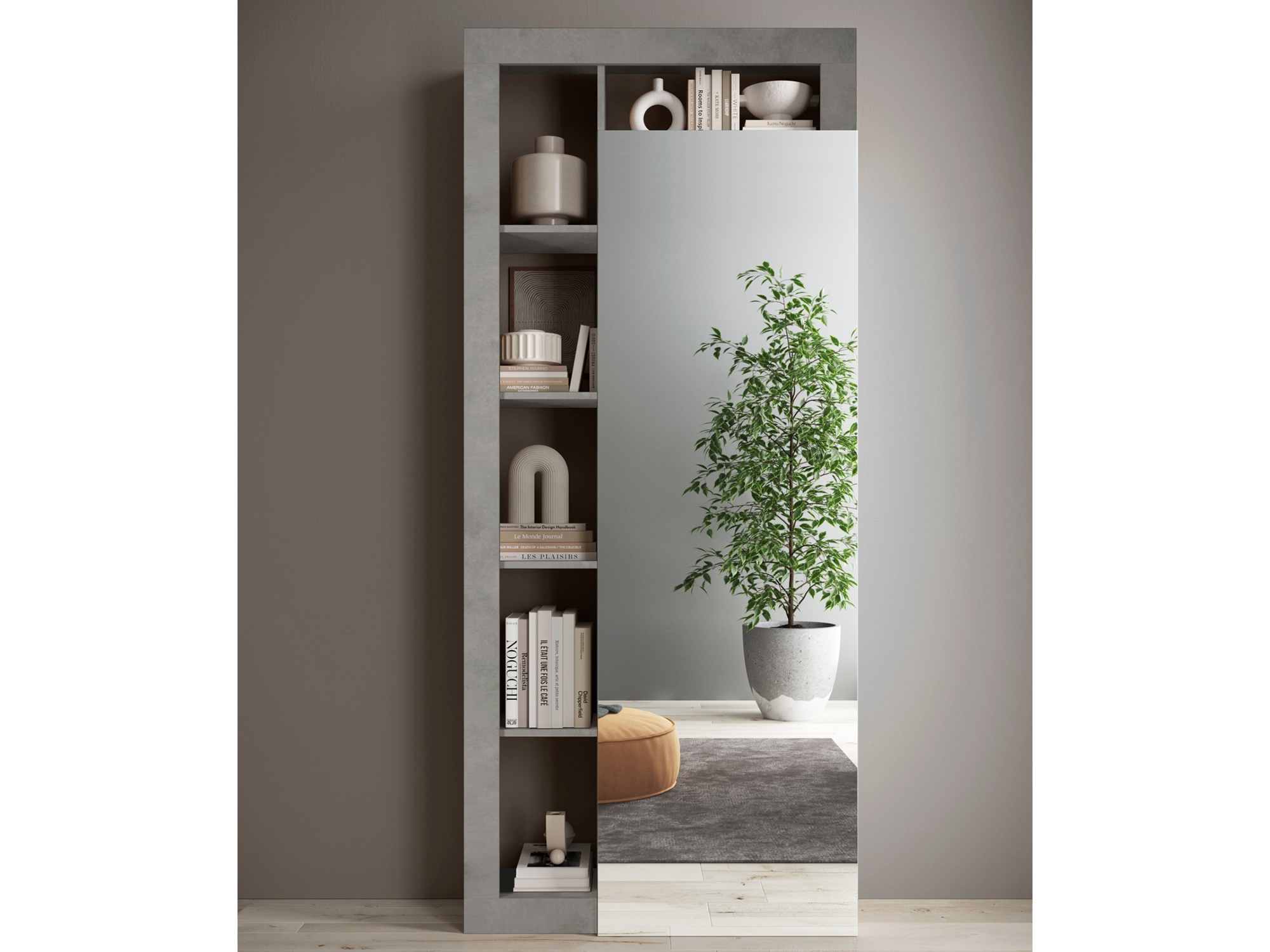 Structure en panneaux revetus de décor béton.Charnières en métal. A assembler.