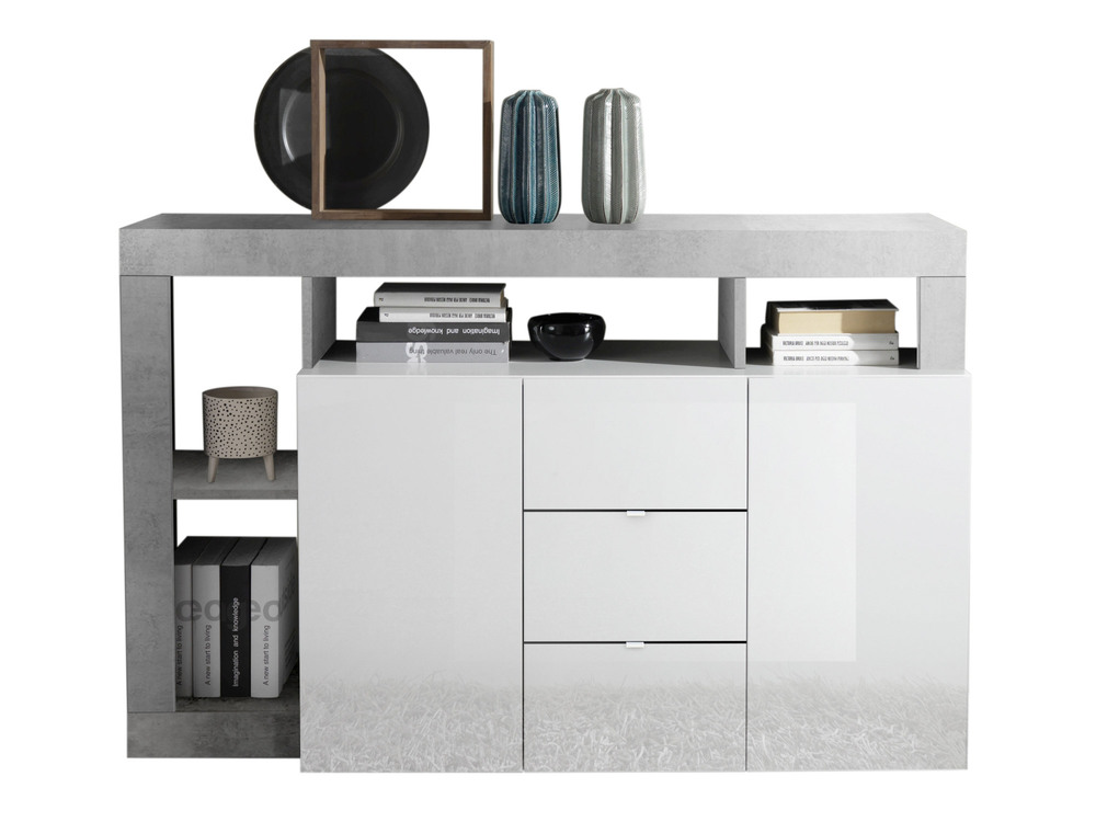Bahut 2 portes 3 tiroirs Fribourg blanc brillant/béton