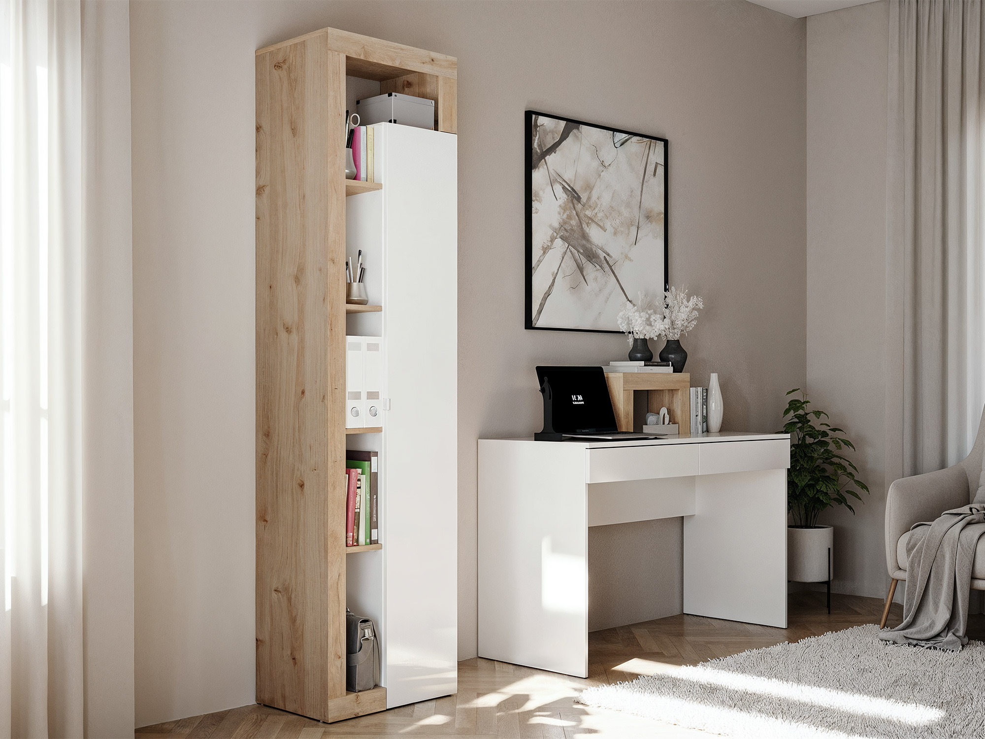 Bibliothèque 1 porte Fribourg laqué blanc/chene