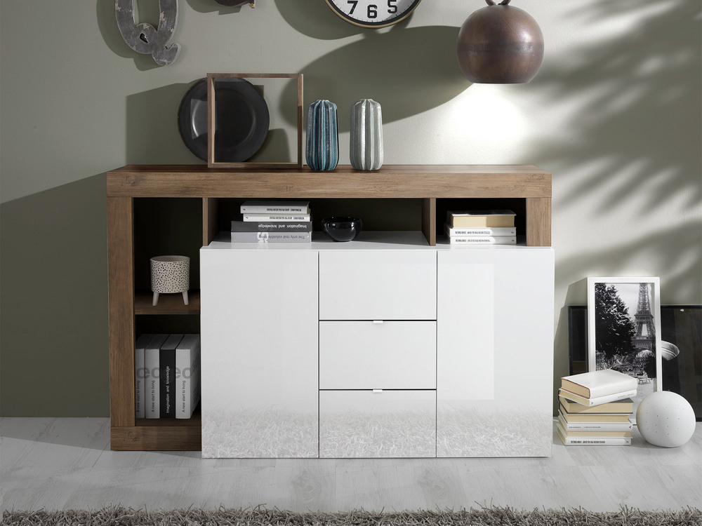 Bahut 2 portes et 3 tiroirs Fribourg laqué blanc/chene mercure