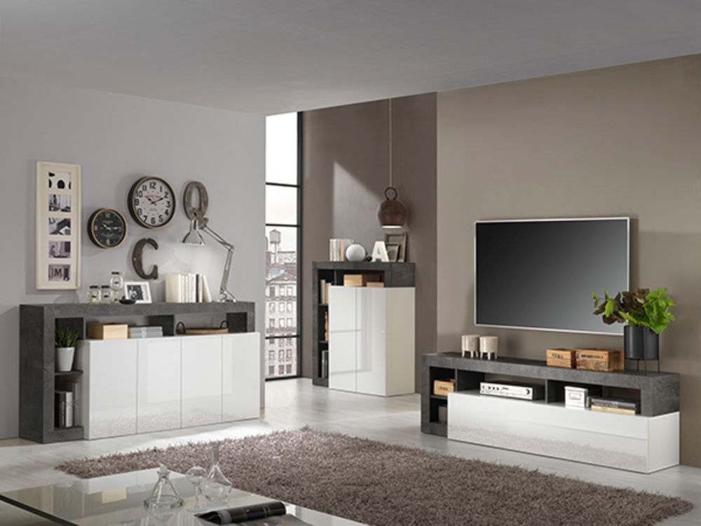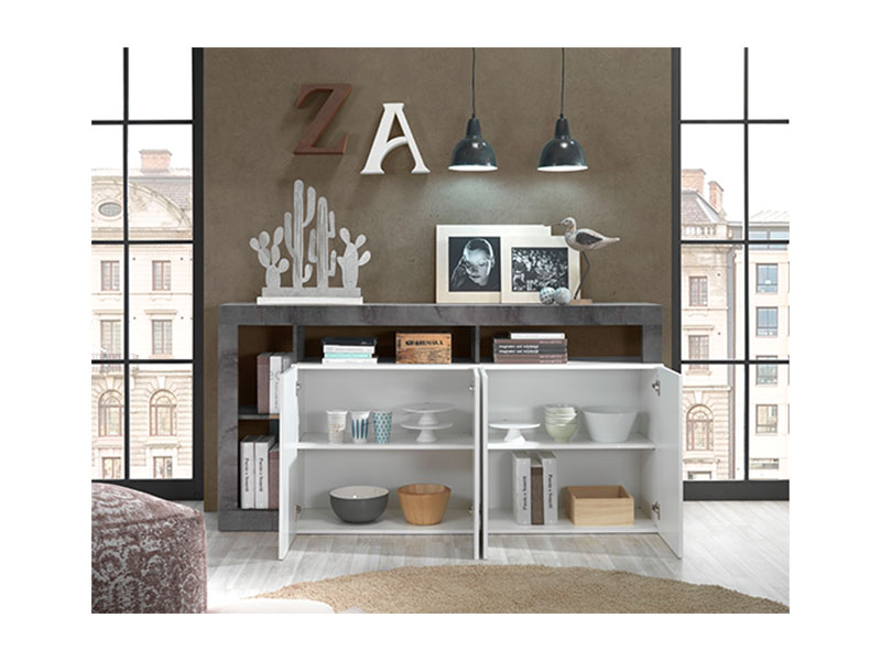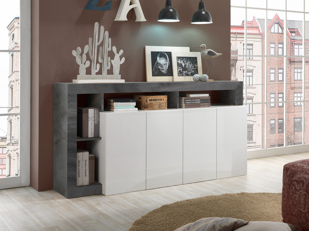Bahut 4 portes Fribourg laqué blanc/oxyde noir