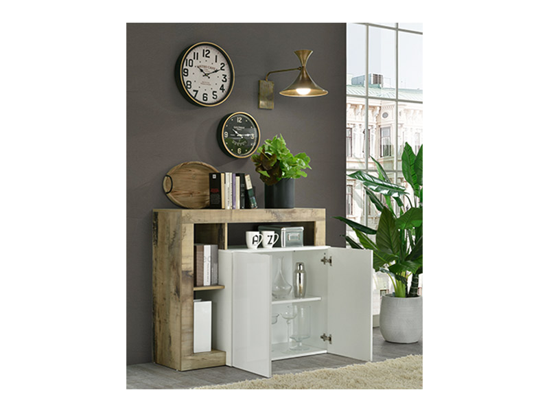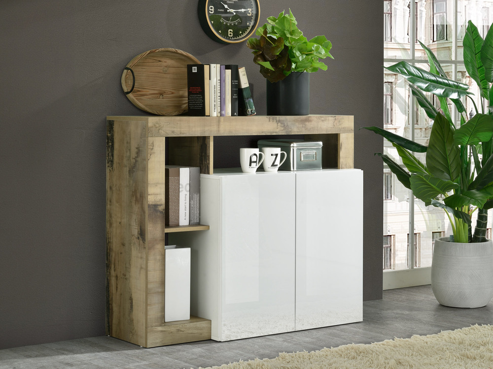 Bahut 2 portes Fribourg laqué blanc/vintage