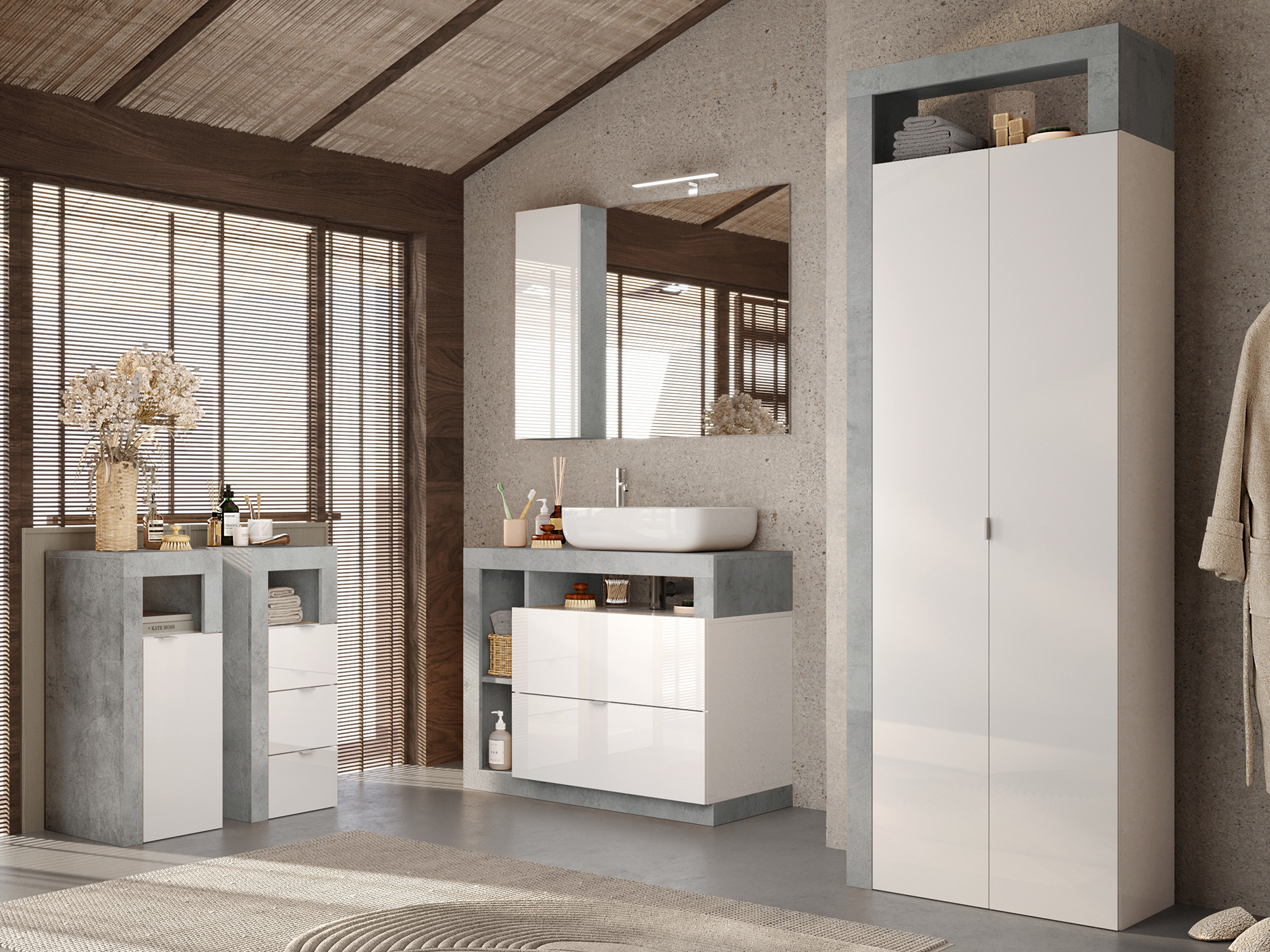 Rangement 3 tiroirs Fribourg meuble d'entrée blanc brillant/béton