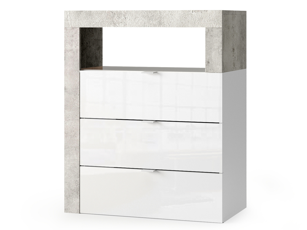 Rangement 3 tiroirs Fribourg meuble d'entrée blanc brillant/béton