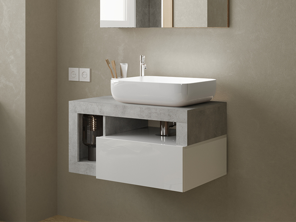 Meuble de salle de bain 1 tiroir 2 niches suspendu Fribourg salle de bain blanc/béton