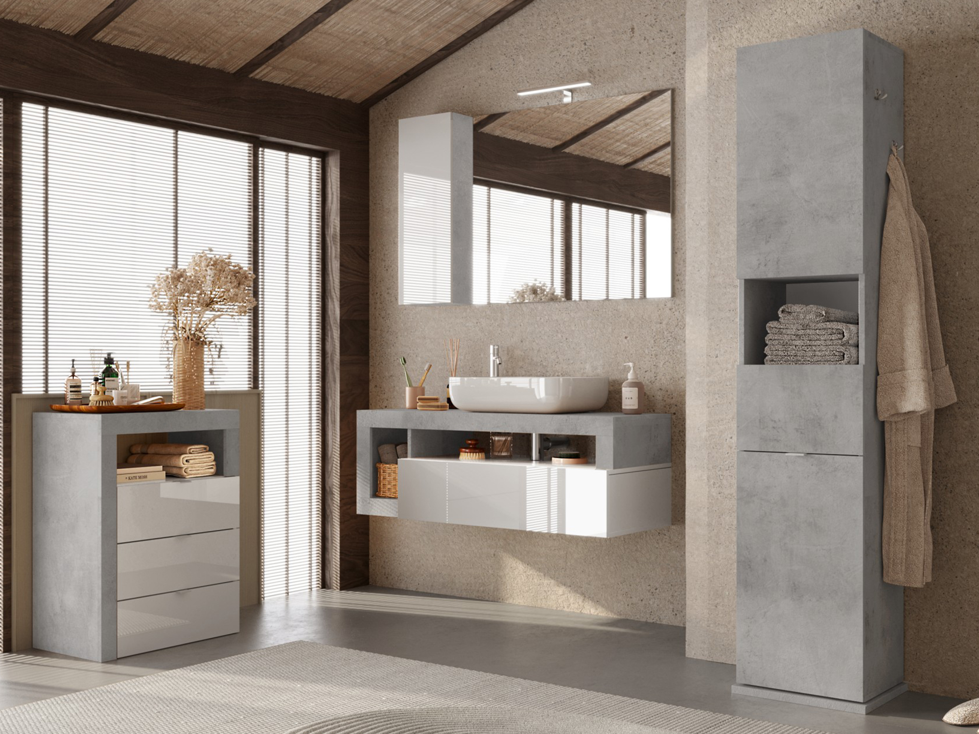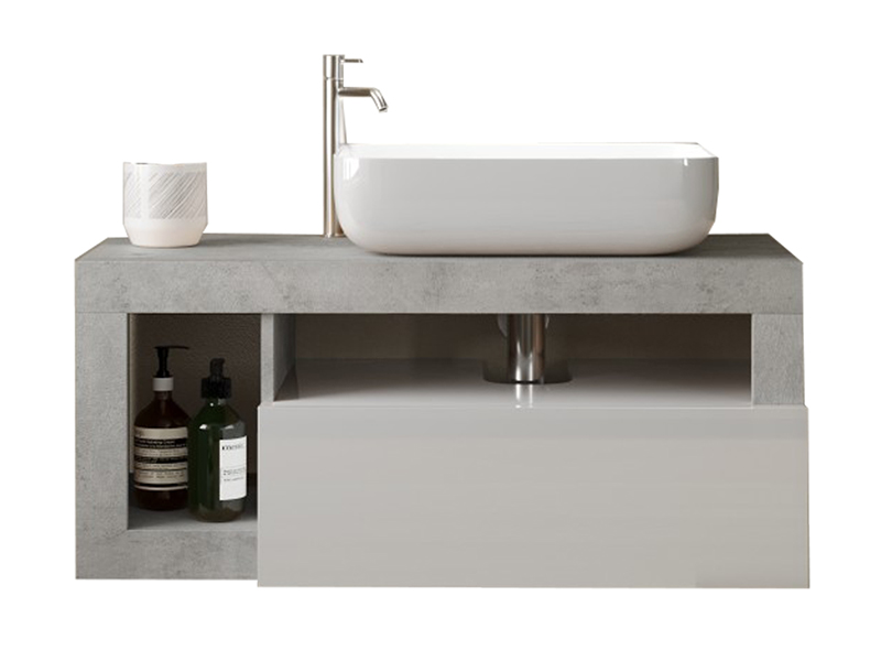 Meuble de salle de bain 1 tiroir 2 niches suspendu Fribourg salle de bain blanc/béton