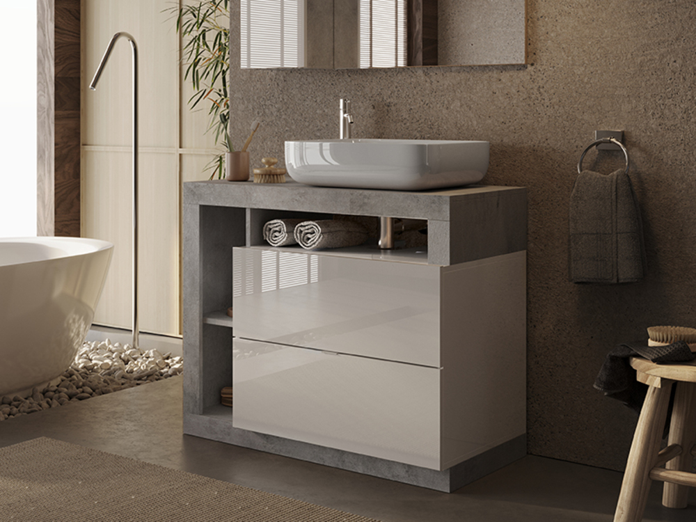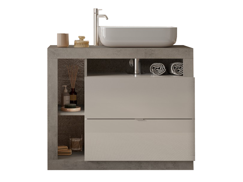 Meuble de salle de bain 2 tiroirs et 3 niches Fribourg salle de bain blanc/béton