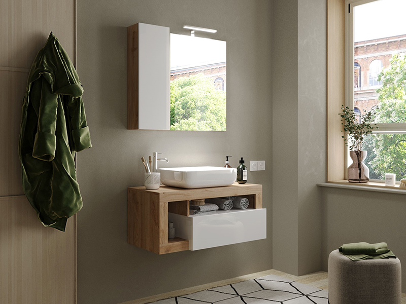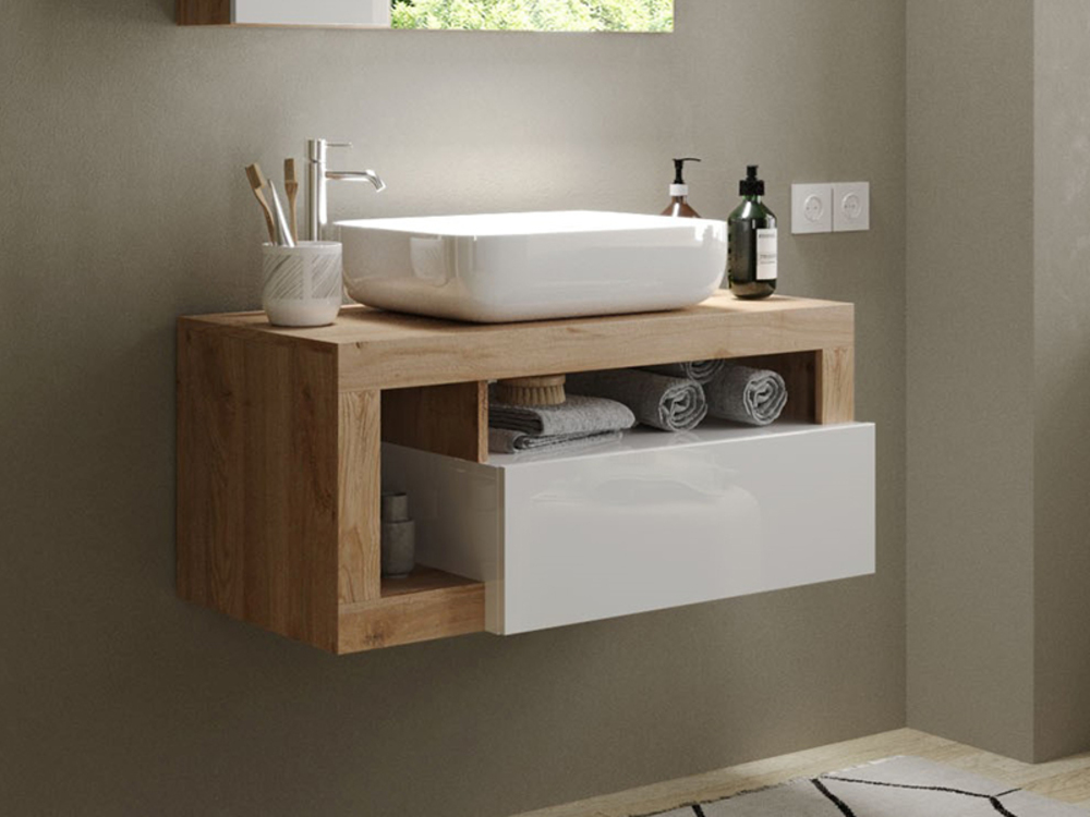 Meuble de salle de bain 1 tiroir 2 niches suspendu Fribourg salle de bain