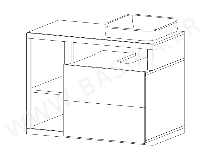 Meuble de salle de bain 2 tiroirs (avec frein) et 3 niches.