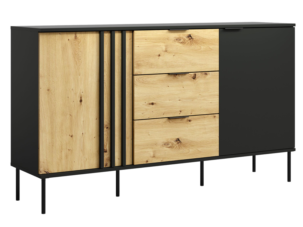 Bahut 2 portes 3 tiroirs Giorgia chene artisan/noir