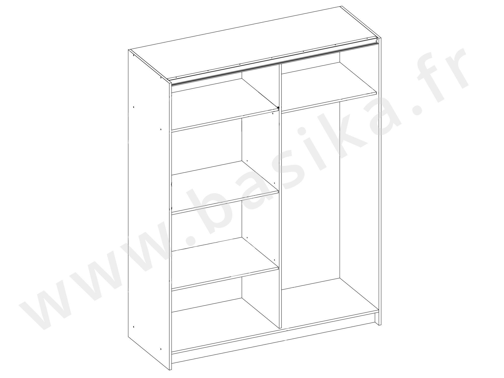 Aménagement intérieur: 1/2 lingère comprenand 1 tablette + 1 tringle et 1/2 rayonnage (4 tablettes).