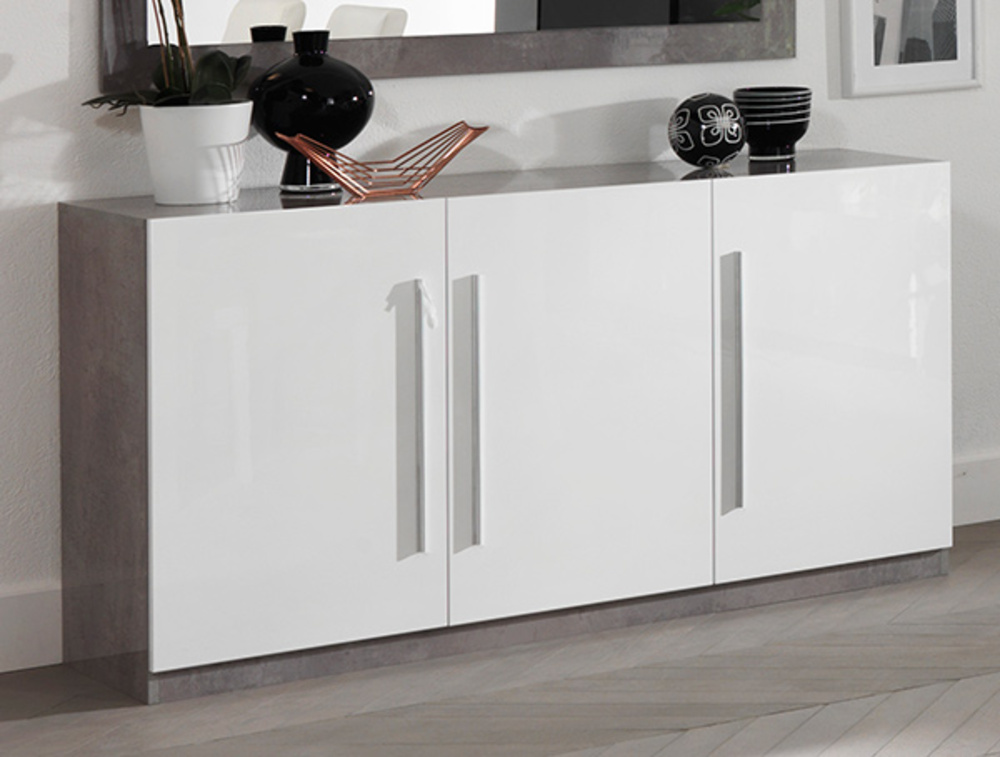Bahut 3 portes Greta laqué blanc/béton