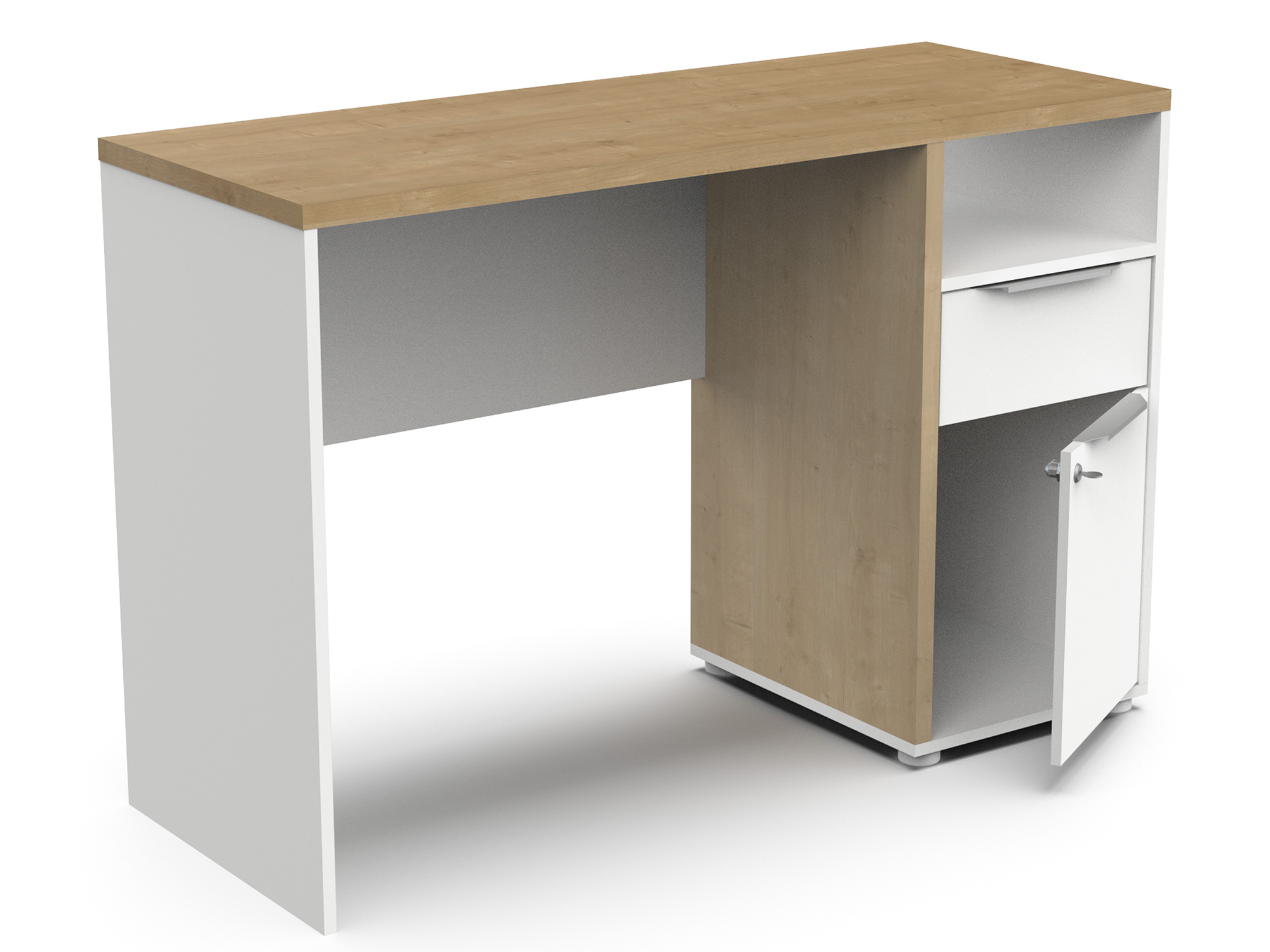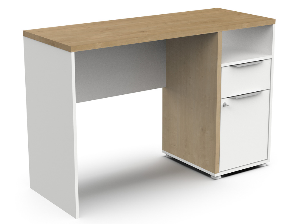 Conçu avec des panneaux de particules de 15 et 25 mm, ce bureau moderne de la gamme Hamilton présente un décor en papier chêne Hamilton et blanc mat, idéal pour un look contemporain. Le meuble dispose d'un caisson sécurisé avec serrure, d'un tiroir monté sur coulisses à billes (29,9 x 33,7 x 8,6 cm) et d'une niche, offrant des solutions de rangement pratiques et esthétiques. Facile à assembler, il supporte une charge maximale de 30 kg sur le dessus. Le bureau chêne et blanc Hamilton est garanti 2 ans.