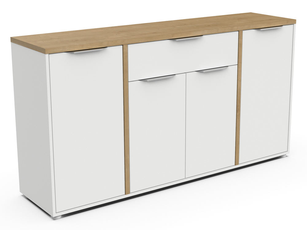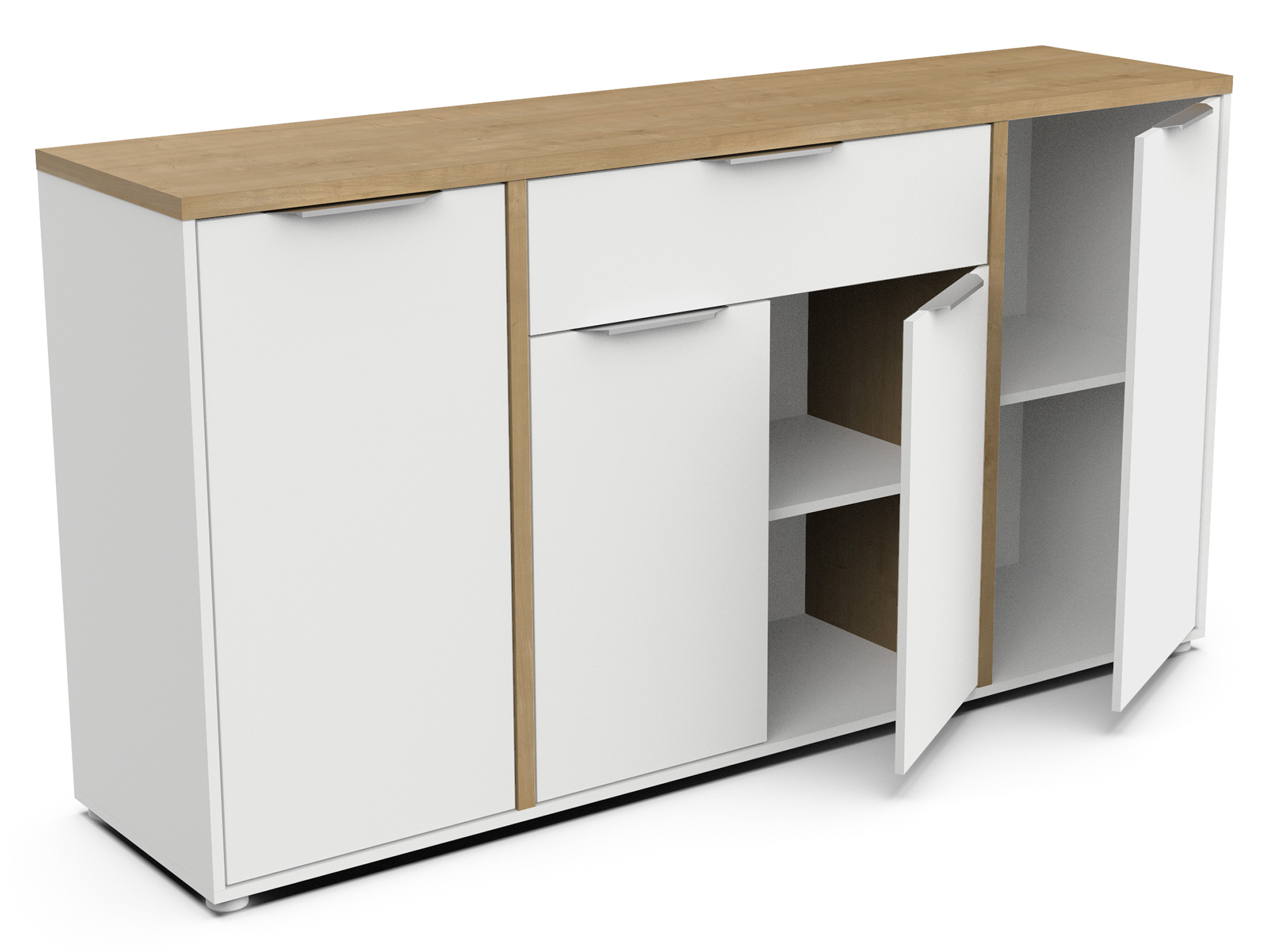 Enfilade 4 portes + 1 tiroir monté sur coulisses à billes.