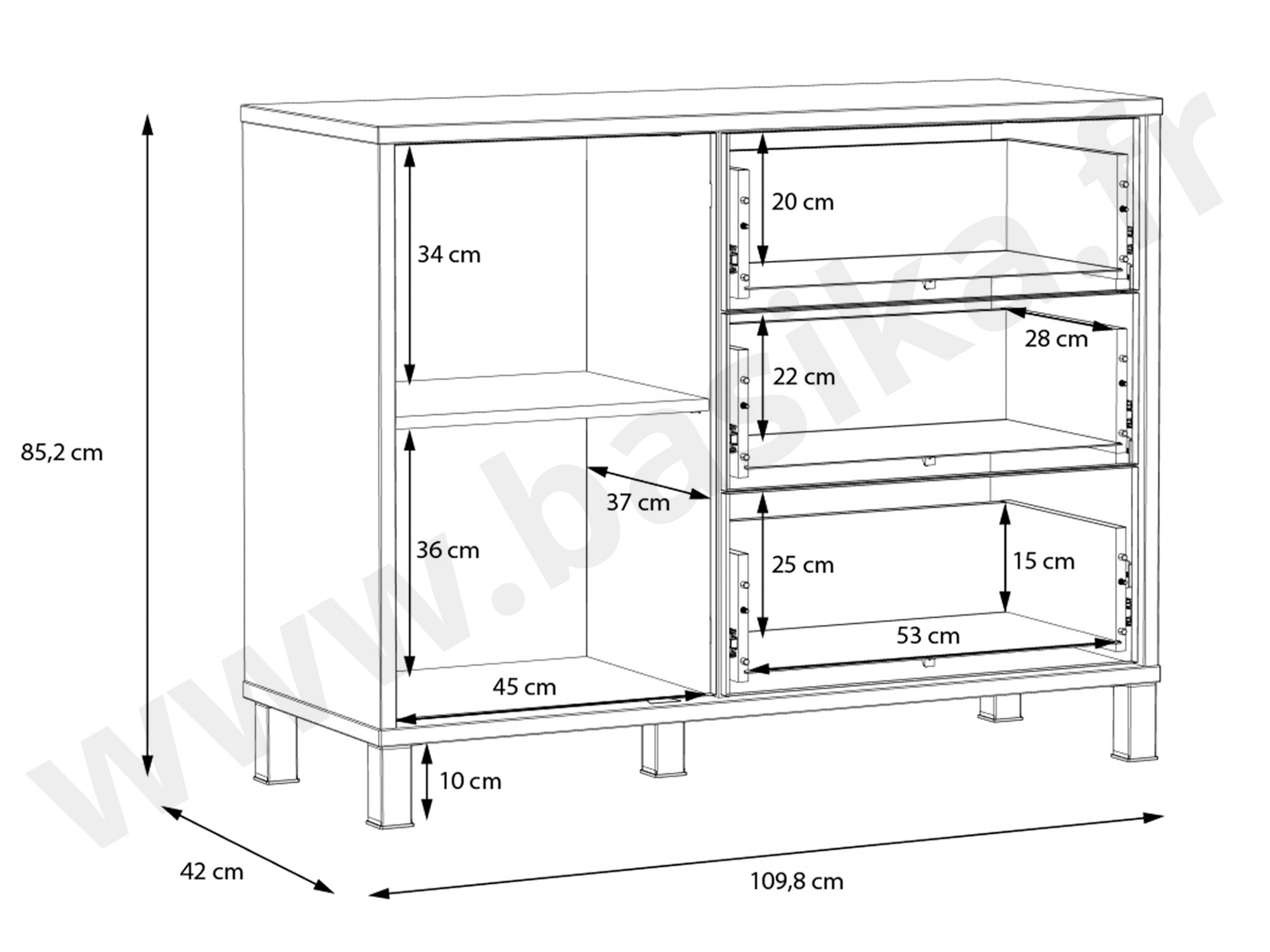 Commode 1 porte avec fermeture en douceur et 3 tiroirs.