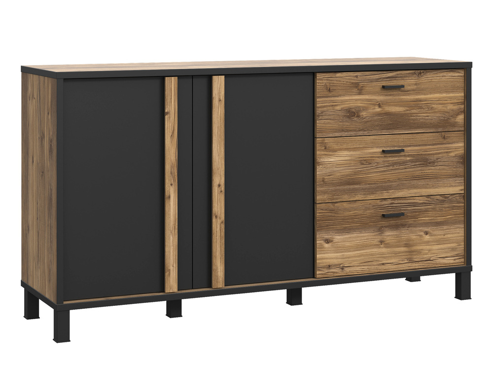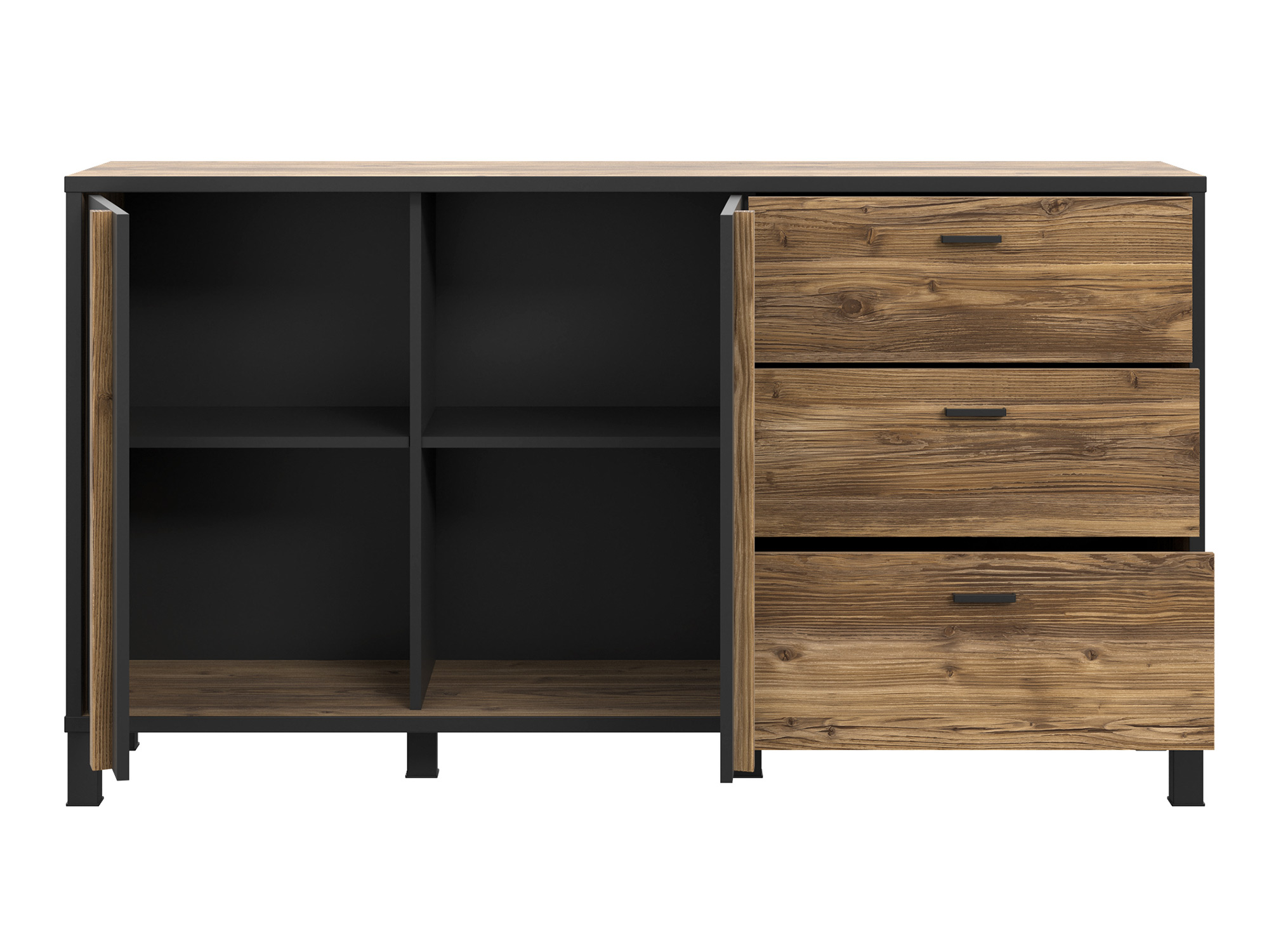Côté pratique, cette enfilade indus Hayato a tout pour plaire : 2 portes pour vos essentiels et 3 tiroirs pour tout organiser. Ses poignées en métal et son piètement robuste apportent une finition impeccable et une stabilité à toute épreuve. Fabriqué en Europe, ce meuble chêne riviera/noir Hayato est conçu en panneaux de particules de qualité, il s'assemble rapidement grâce à la notice de montage.