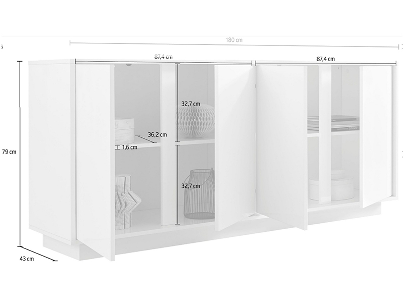Structure er façades en 16 mm. Décor blanc brillant.Provenance Italie. A assembler.