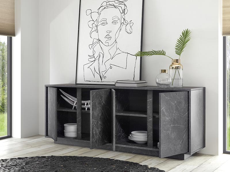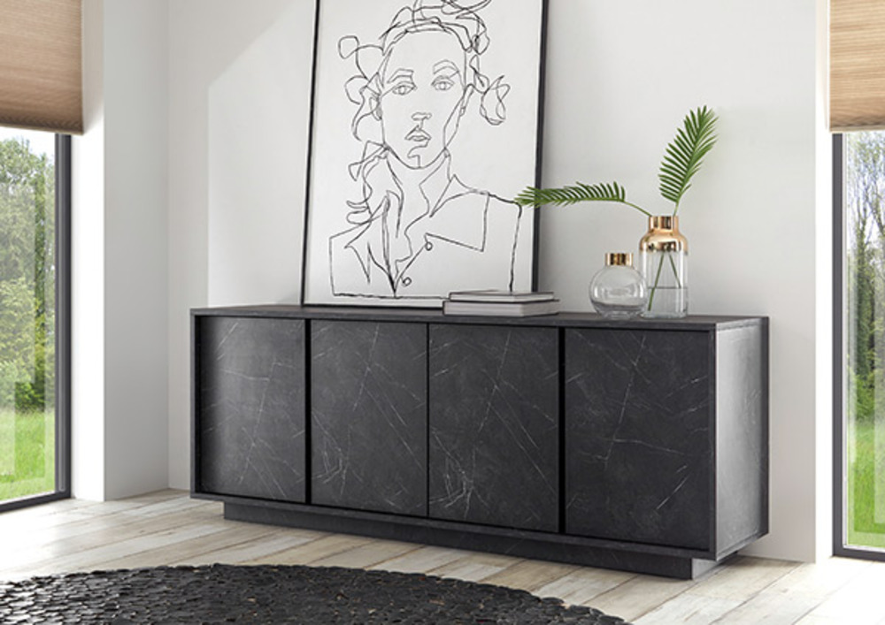 Structure er façades en 16 mm. Décor marbre noir.Provenance Italie. A assembler.