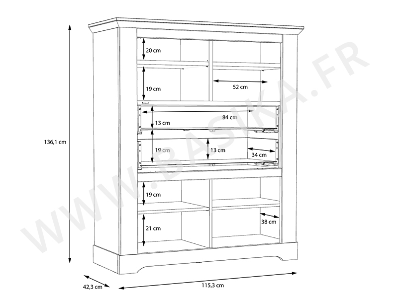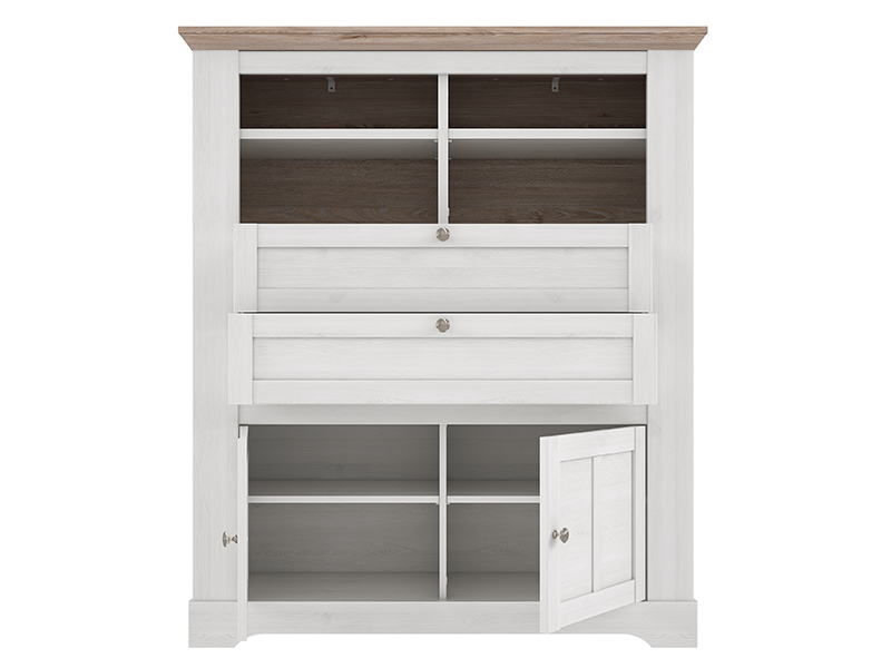 Enfilade haute avec 2 portes, 2 tiroirs et 4 niches.