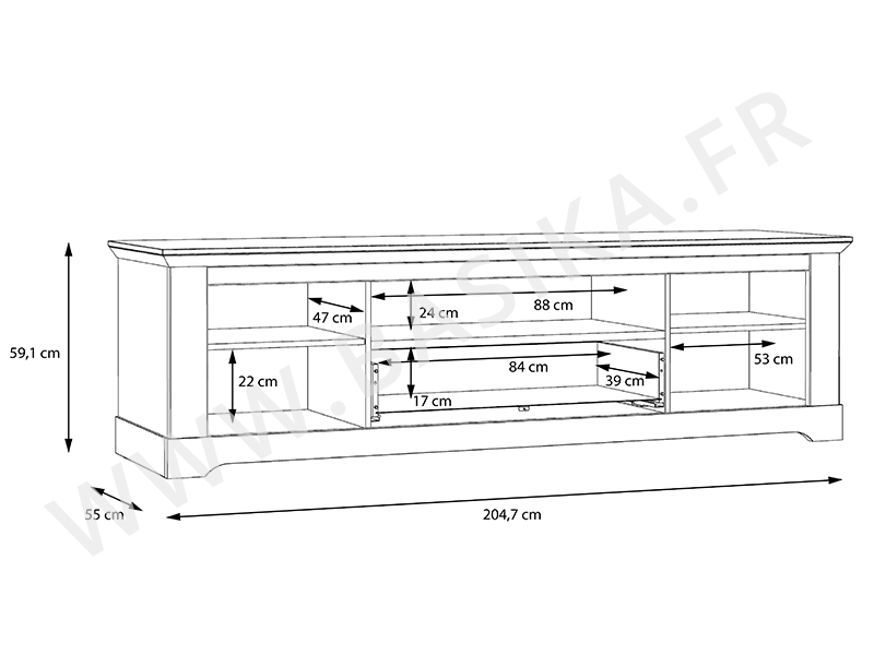 Meuble TV 2 portes, 1 tiroir et 1 niche.