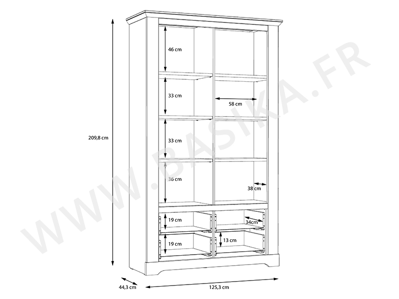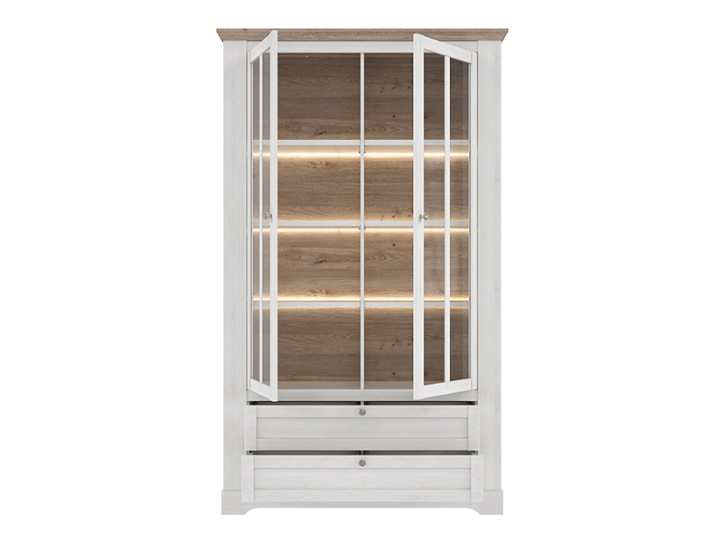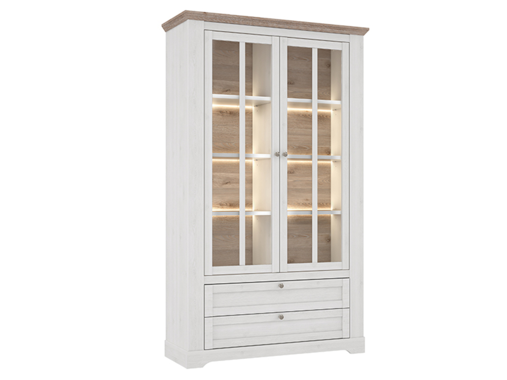 Vitrine 2 portes vitrées en verre sécurit et 2 tiroirs.