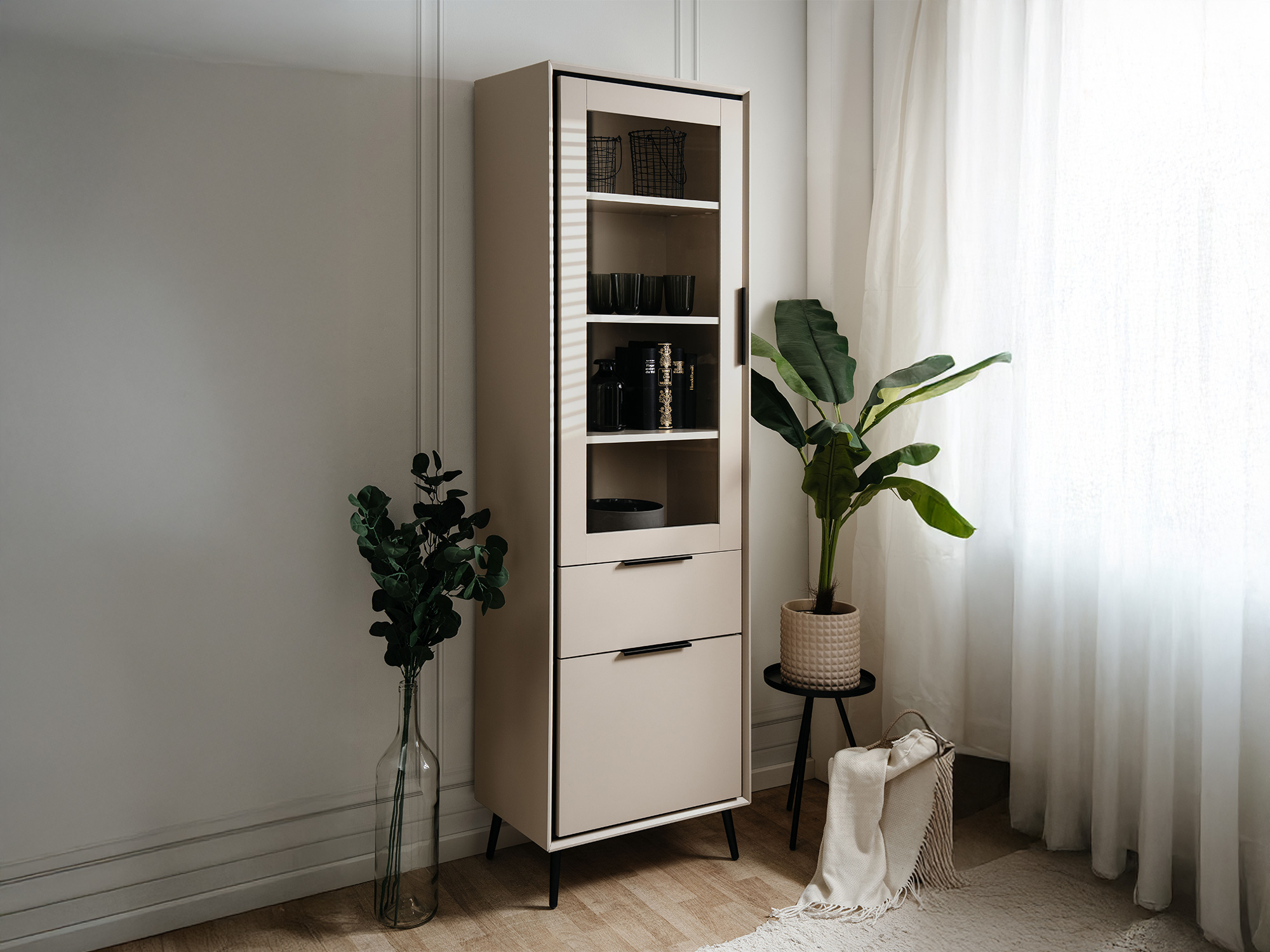 Vitrine 2 portes dont 1 vitrée et 1 tiroir.