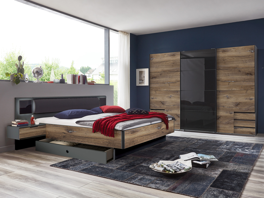 Armoire 2 portes 3 tiroirs Isadora chene flagstaff/graphite
