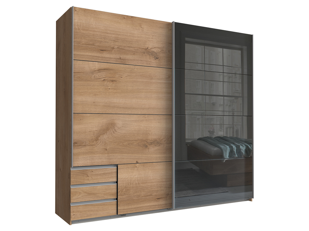 Armoire 2 portes 3 tiroirs Isadora chene poutre/graphite