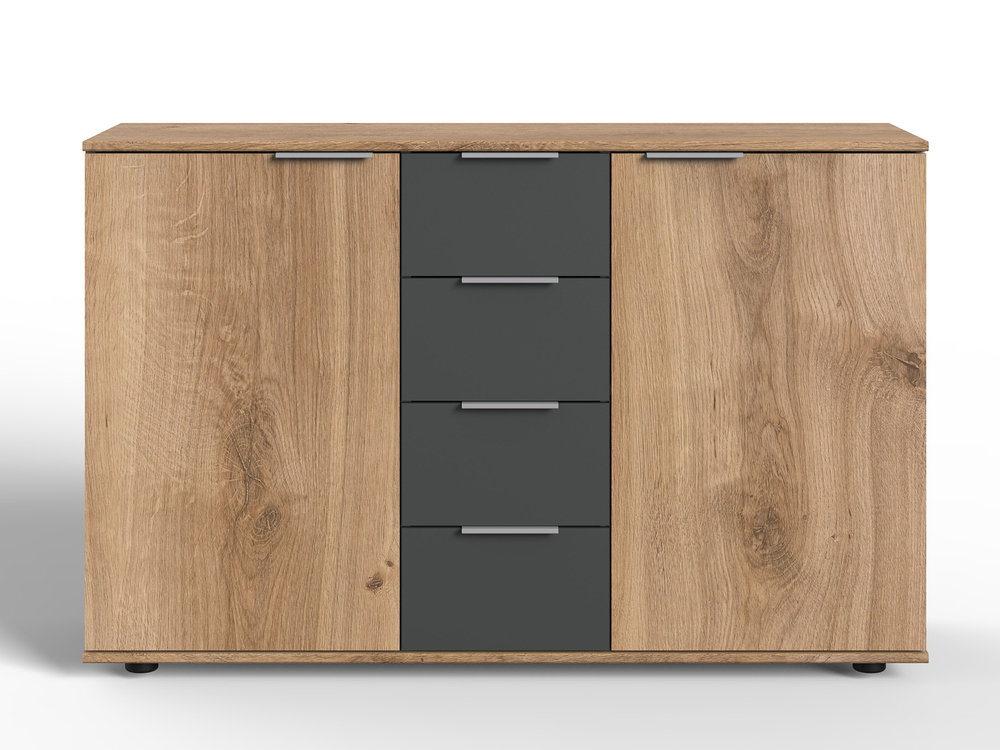 Commode 2 portes 4 tiroirs Isadora chene poutre/graphite