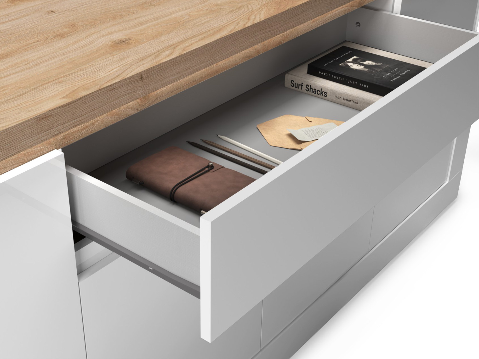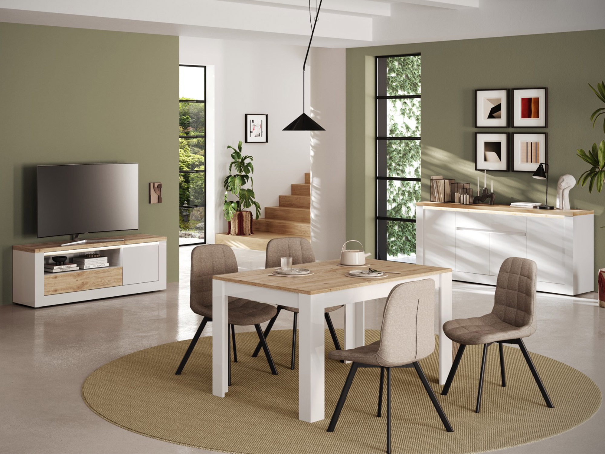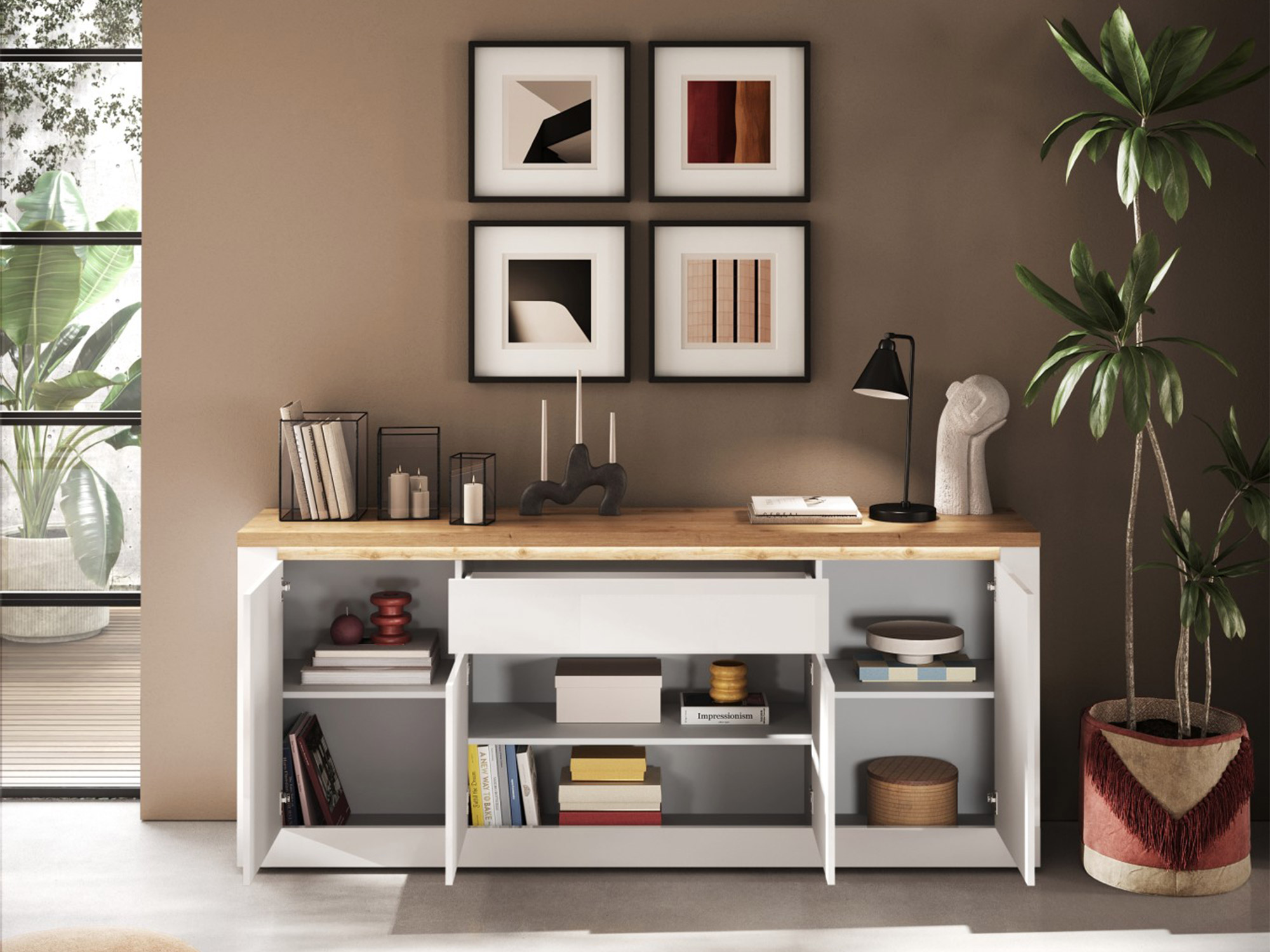 Structure et façades en agglomere de bois, épaisseur 16mm, finition blanc laqué brilliant/chêne bois naturel Cadiz.
