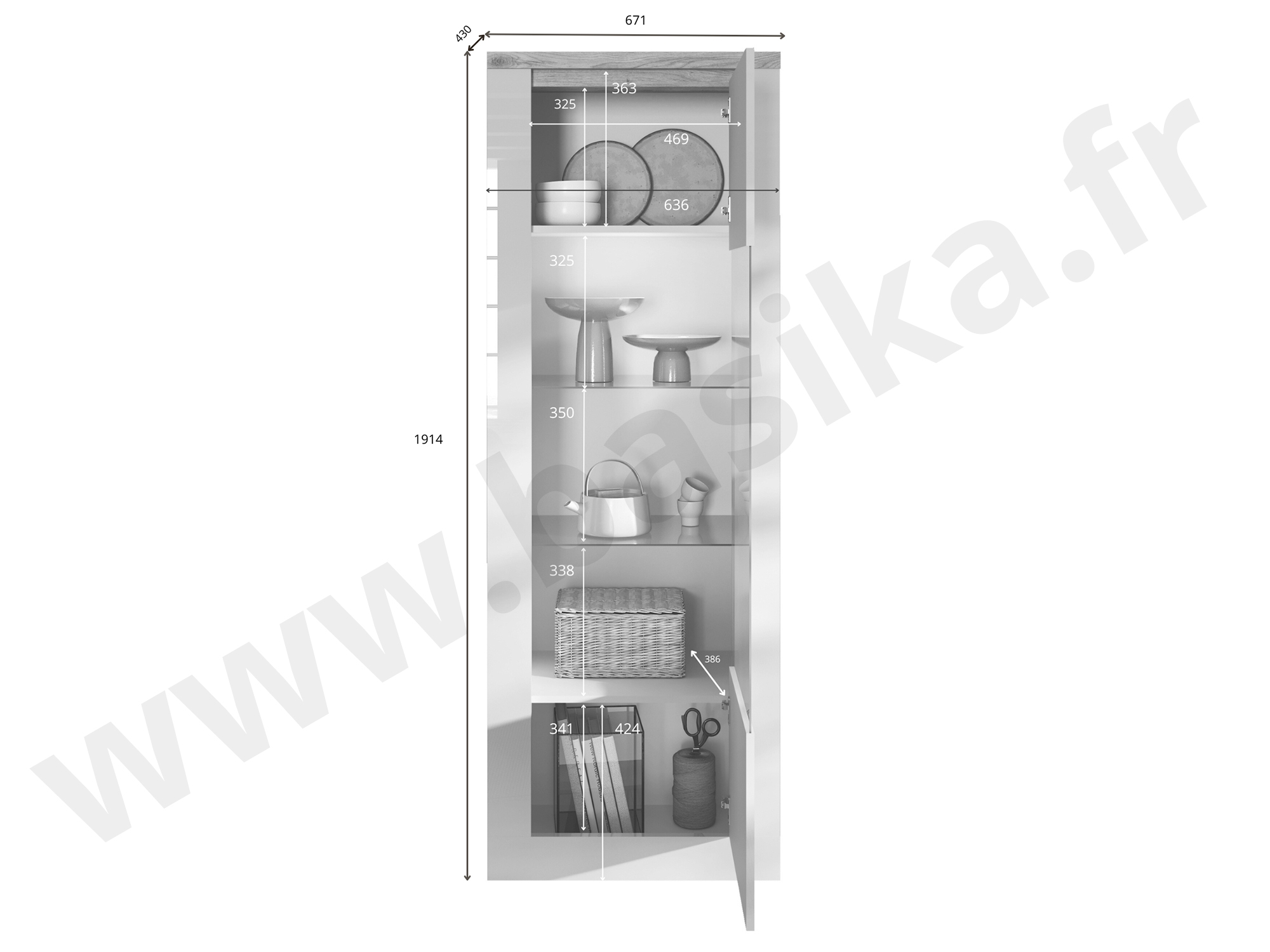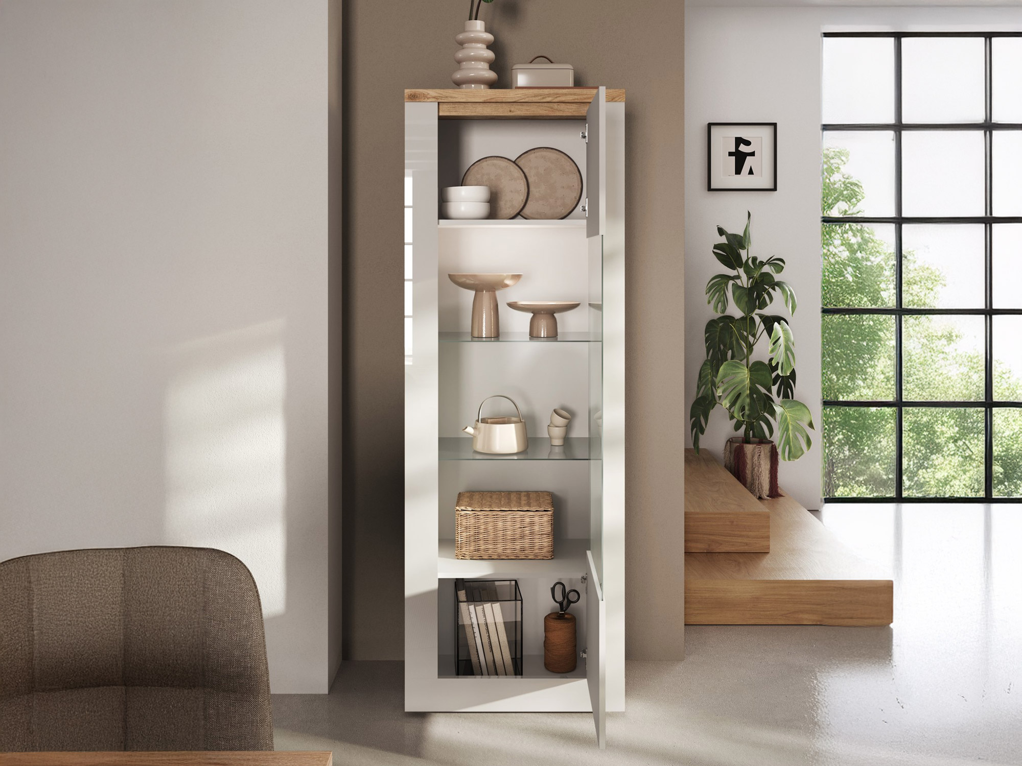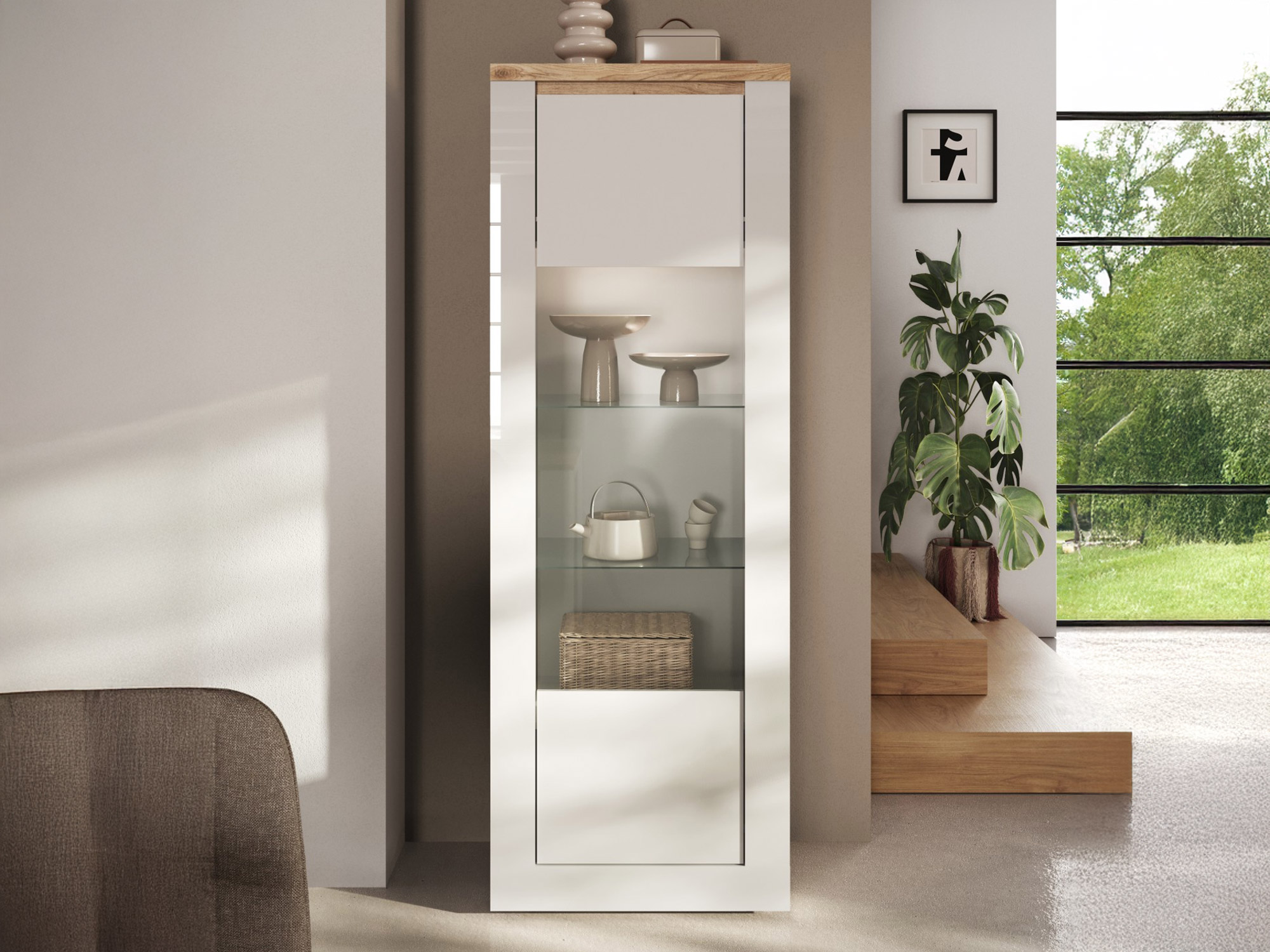Structure et façades en agglomere de bois, épaisseur 16mm, finition blanc laqué brilliant/chêne bois naturel Cadiz.