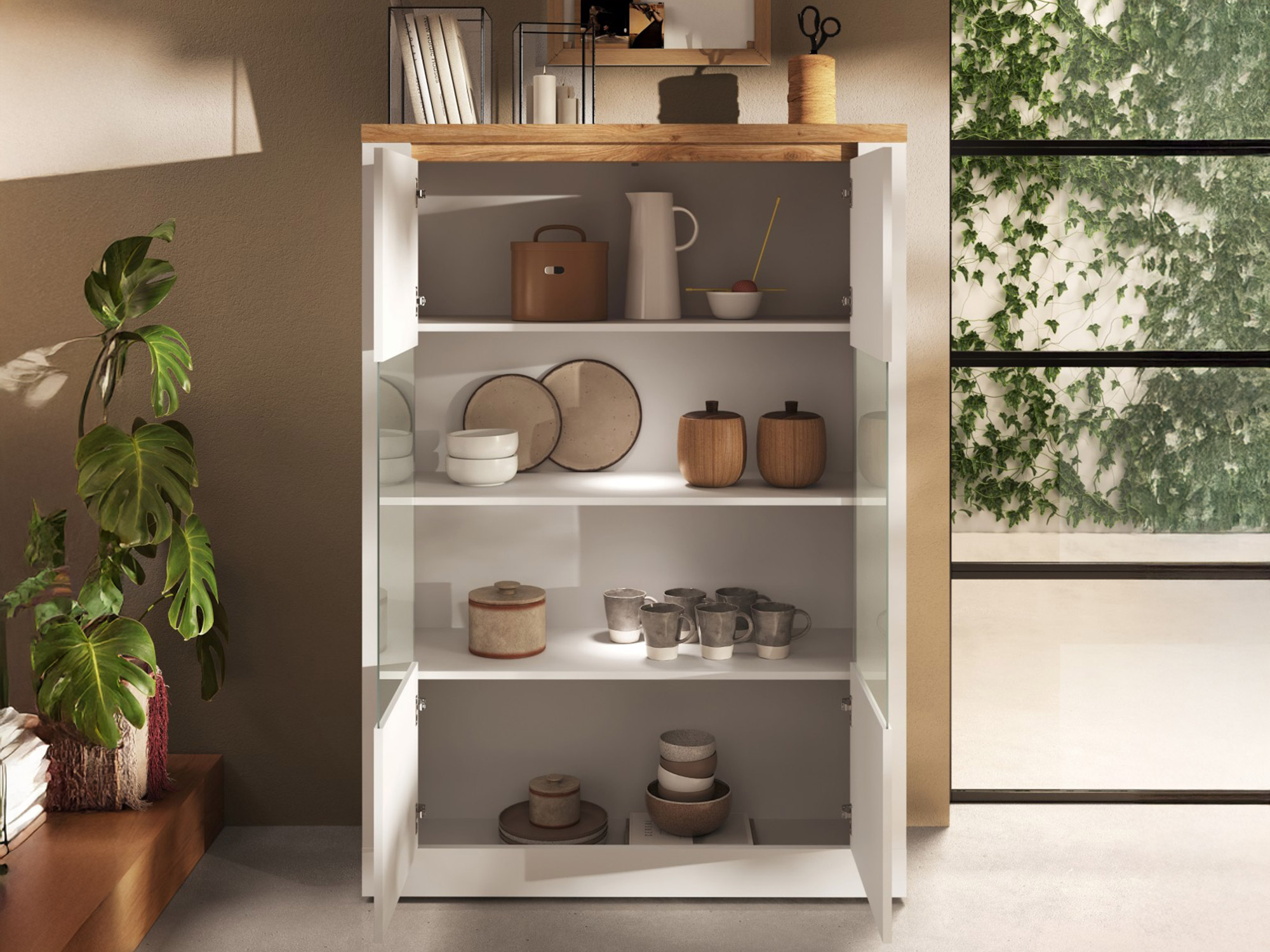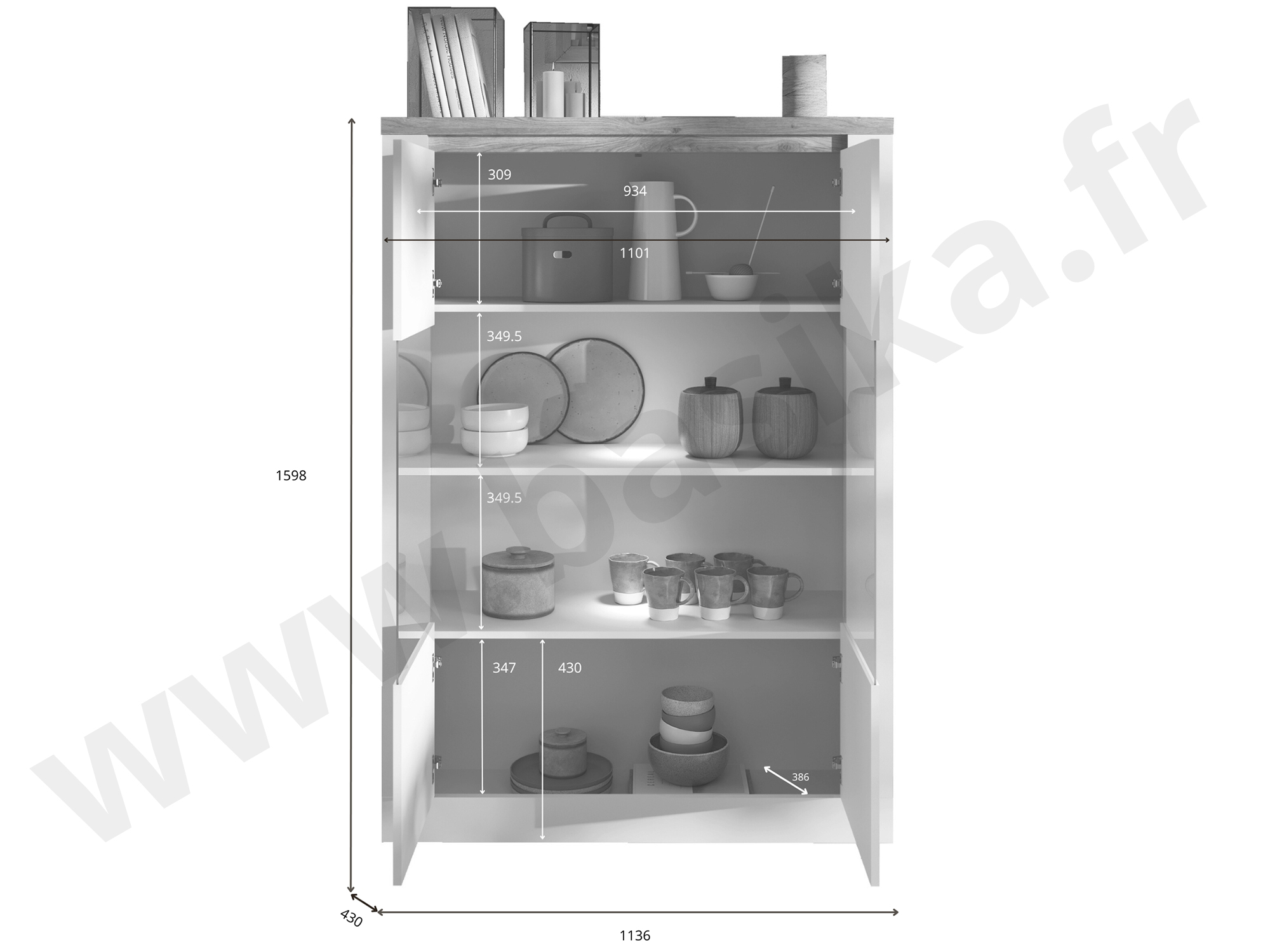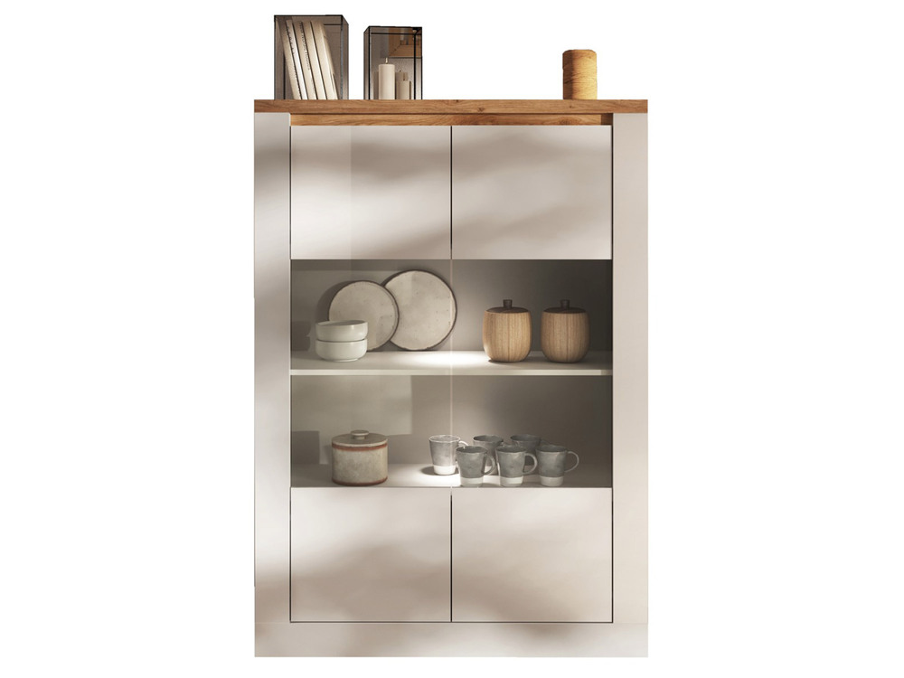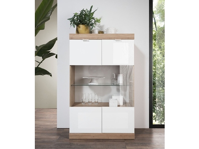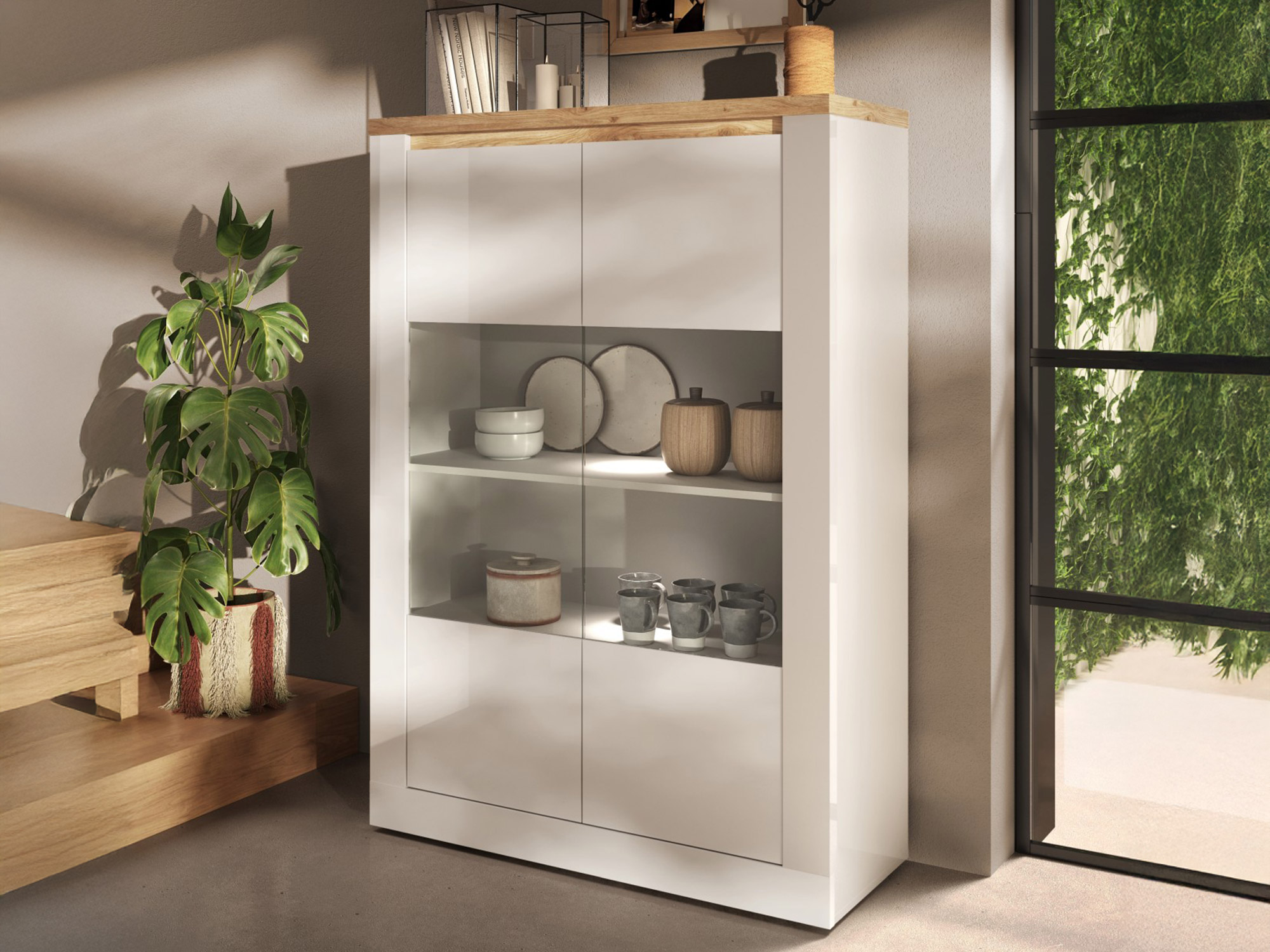 Structure et façades en agglomere de bois, épaisseur 16mm, finition blanc laqué brilliant/chêne bois naturel Cadiz.