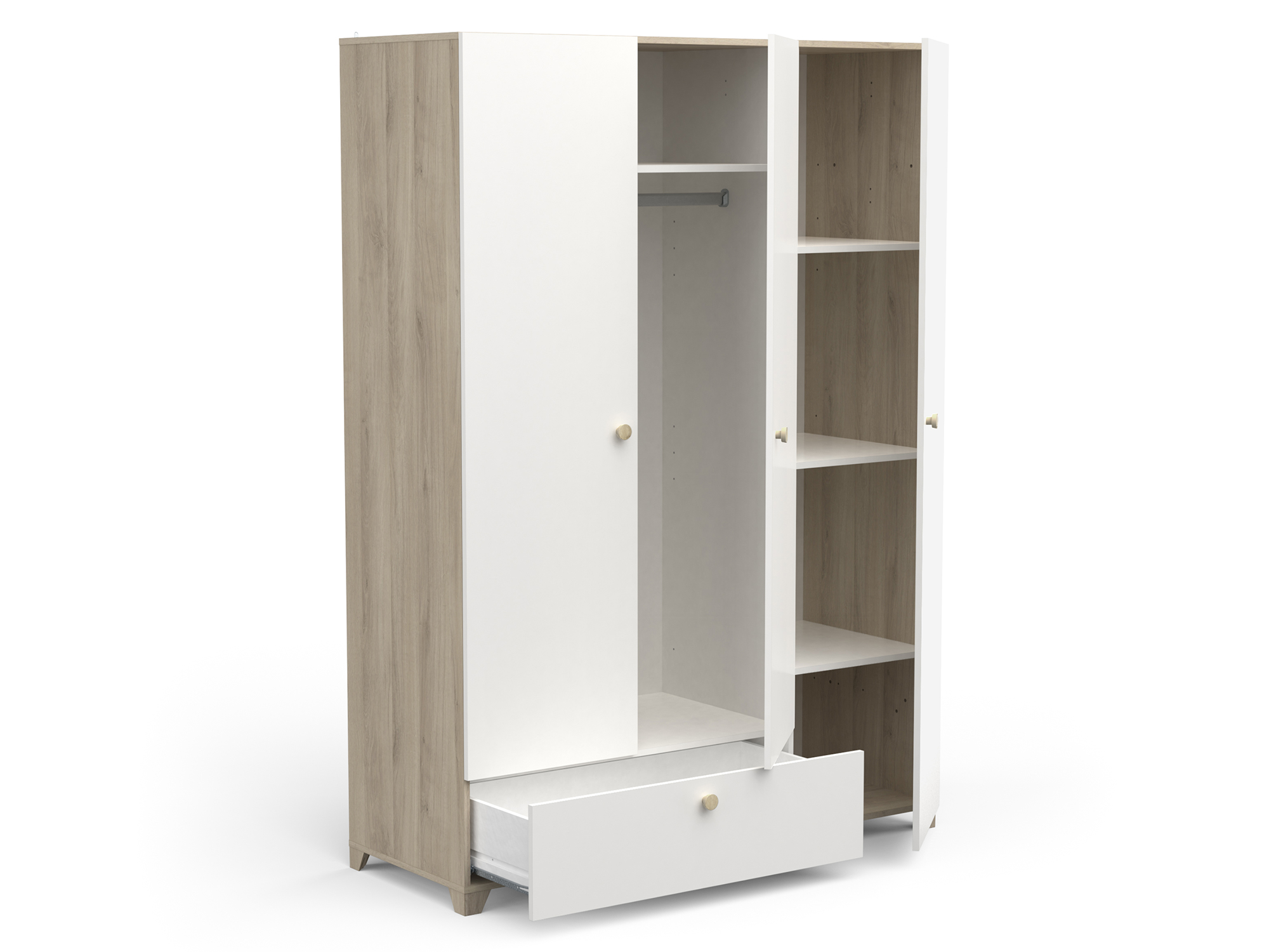 Armoire 3 portes 1 tiroir Izzy blanc/chene kronberg