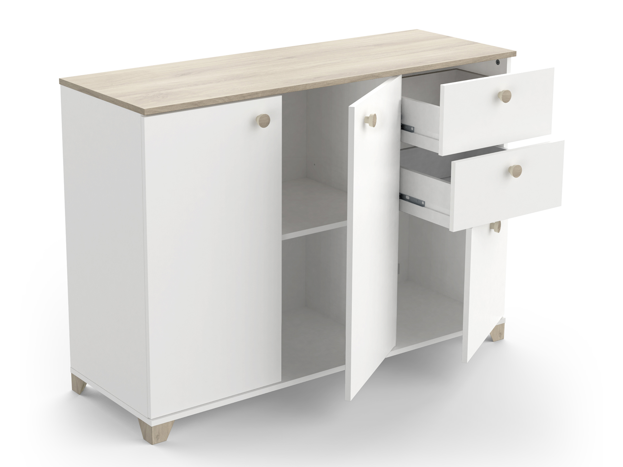 Meuble 3 portes 2 tiroirs Izzy blanc/chene kronberg
