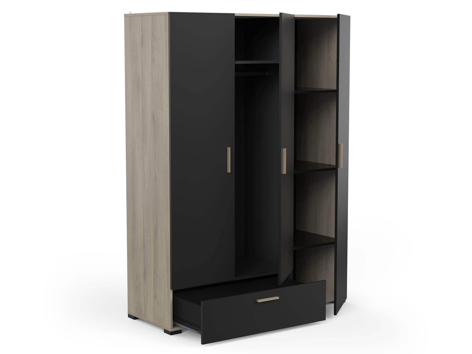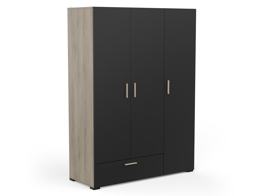 Armoire 3 portes 1 tiroir Izzy chene kronberg/noir mat