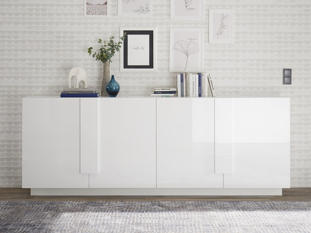 Bahut 4 portes Kaspi blanc brillant