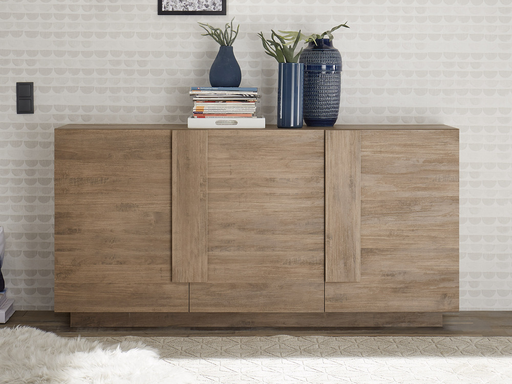 Structure et façades en agglomere de bois, épaisseur 16mm, finition bois.Poignées en agglomere de bois, épaisseur 22mm, finition bois