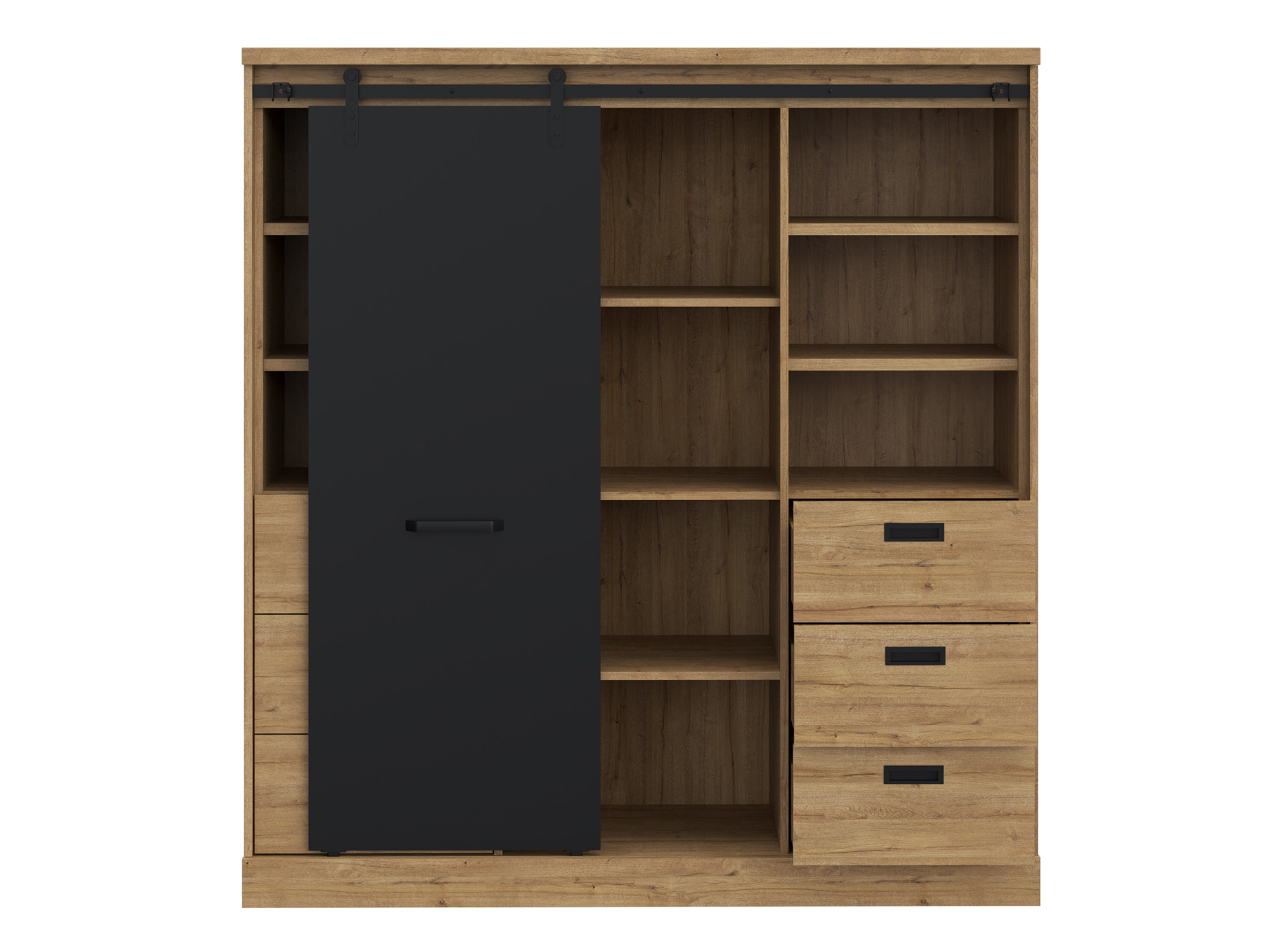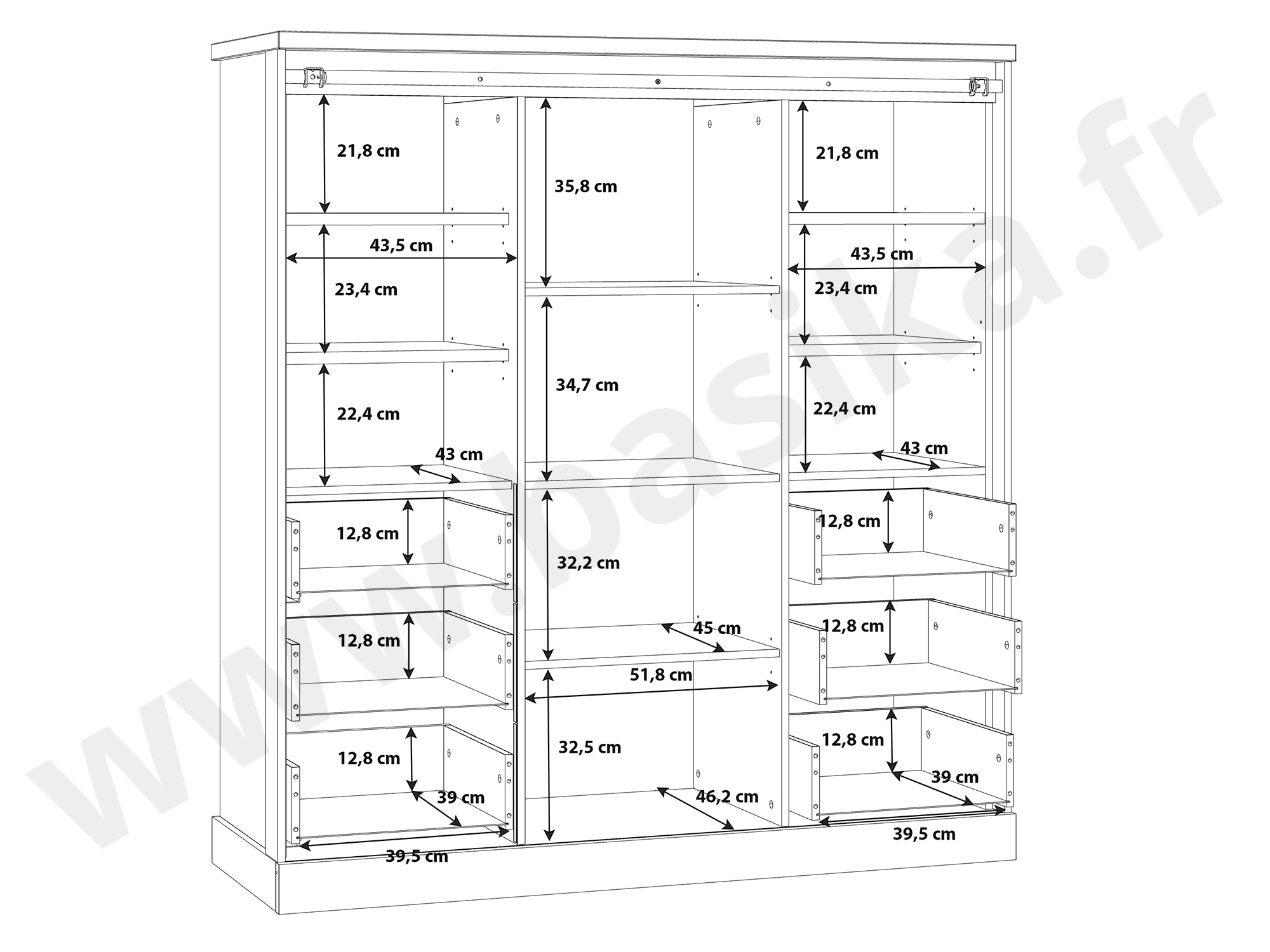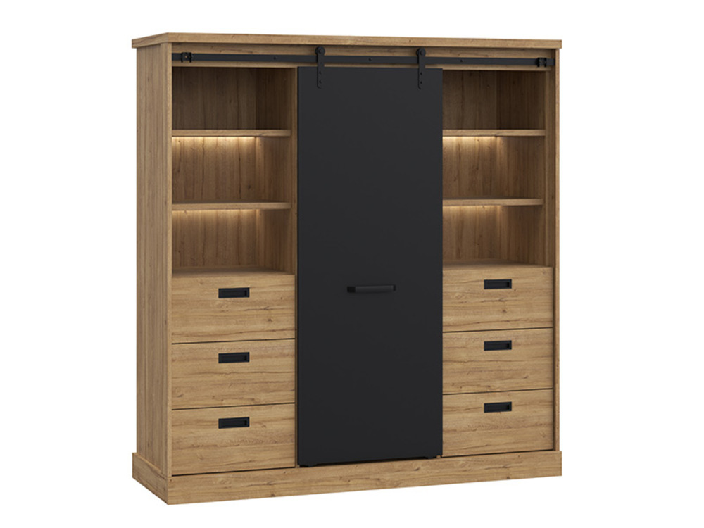 Meuble haut 1 porte coulissante, 6 tiroirs et 6 niches.