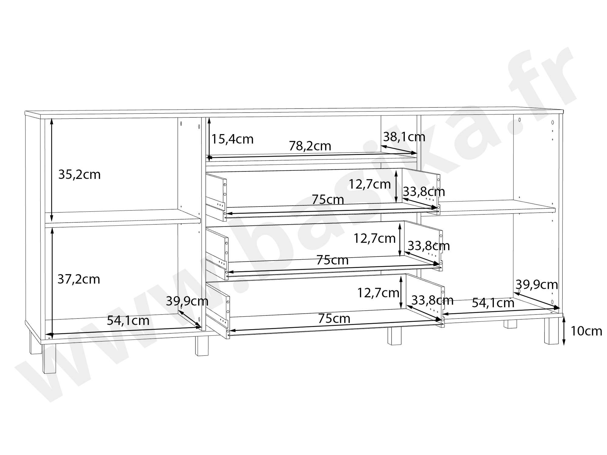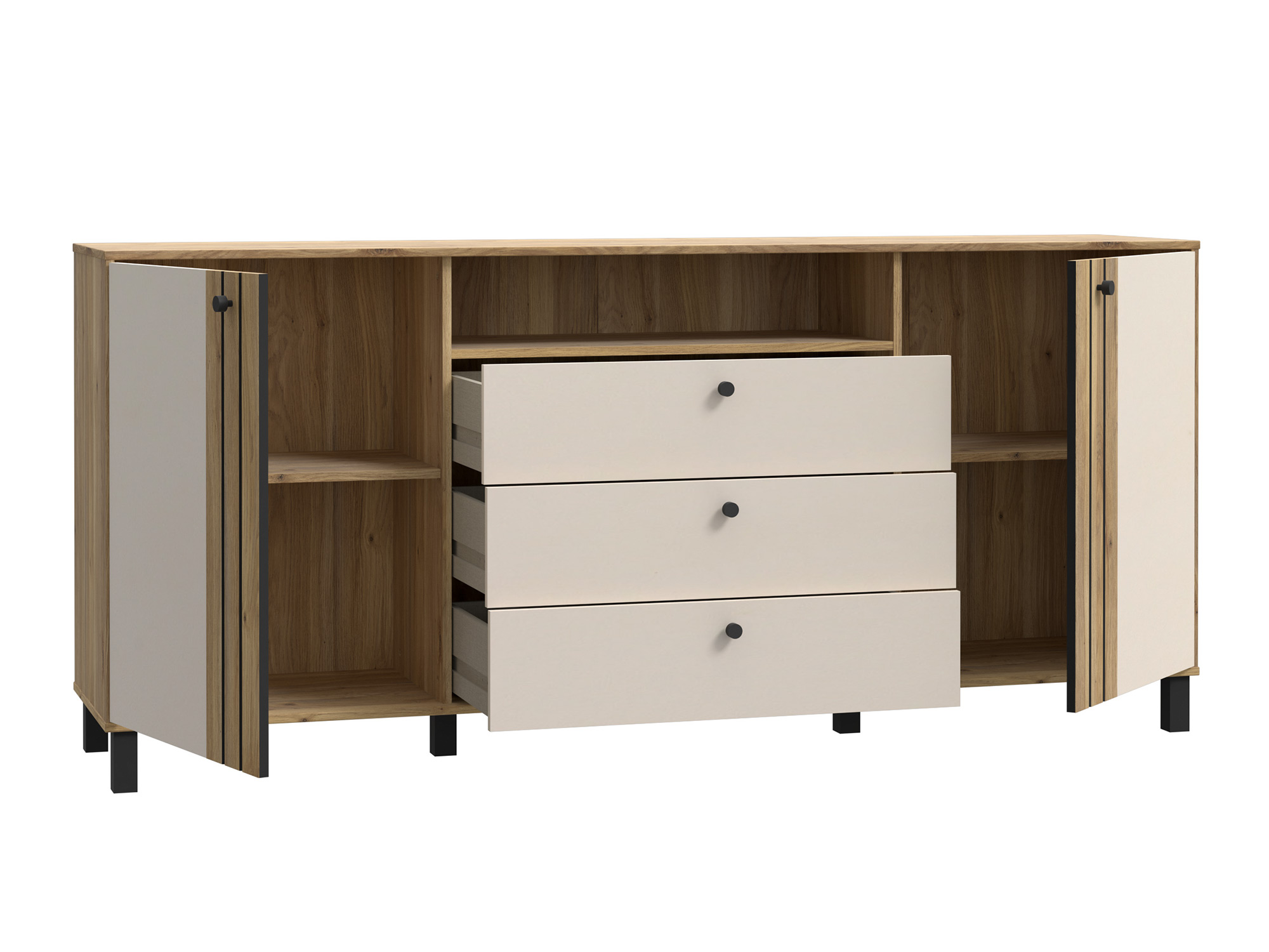 Enfilade 2 portes, 3 tiroirs et 1 niche.