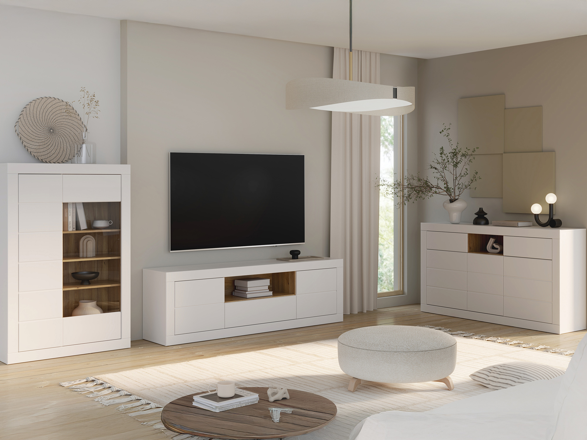 Meuble TV 2 portes et 2 tiroirs avec ouverture PUSH. 1 niche.