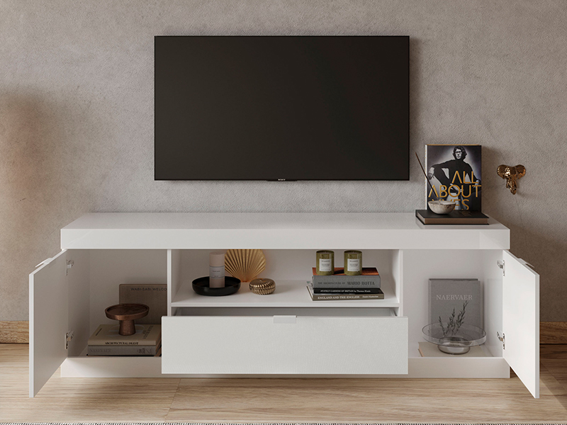 Meuble tv 2 portes 1 tiroir Lime blanc brillant