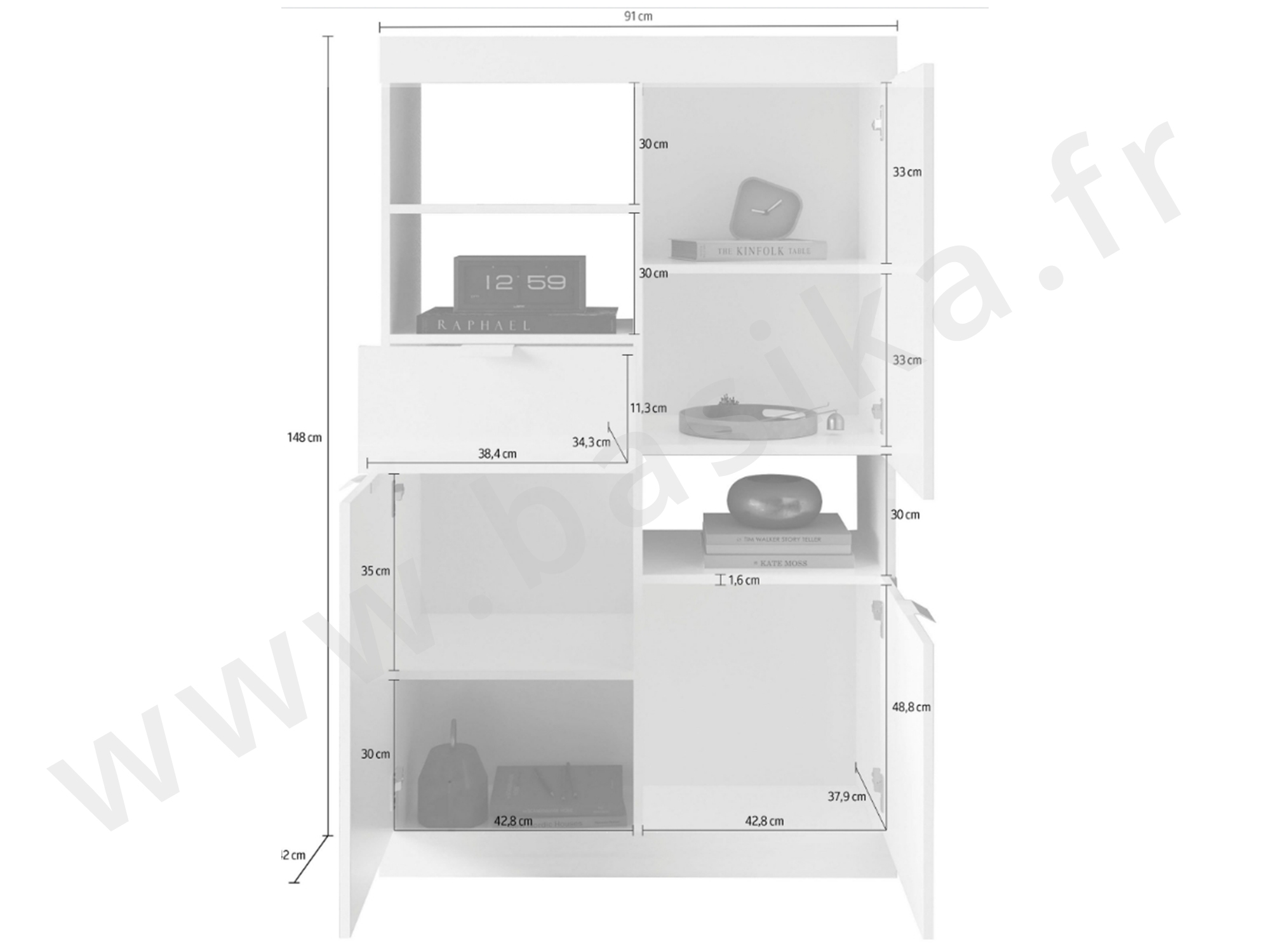 Rangement 3 portes 1 tiroir Lime blanc brillant