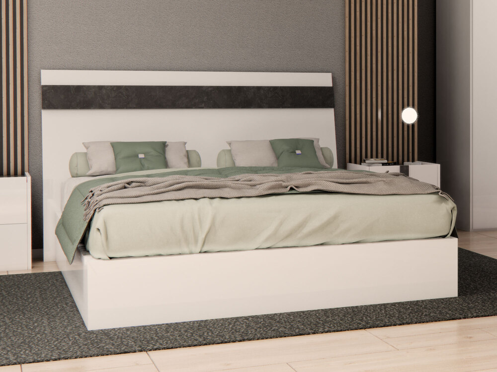 Lit Luxy blanc brillant/marbré noir brillant