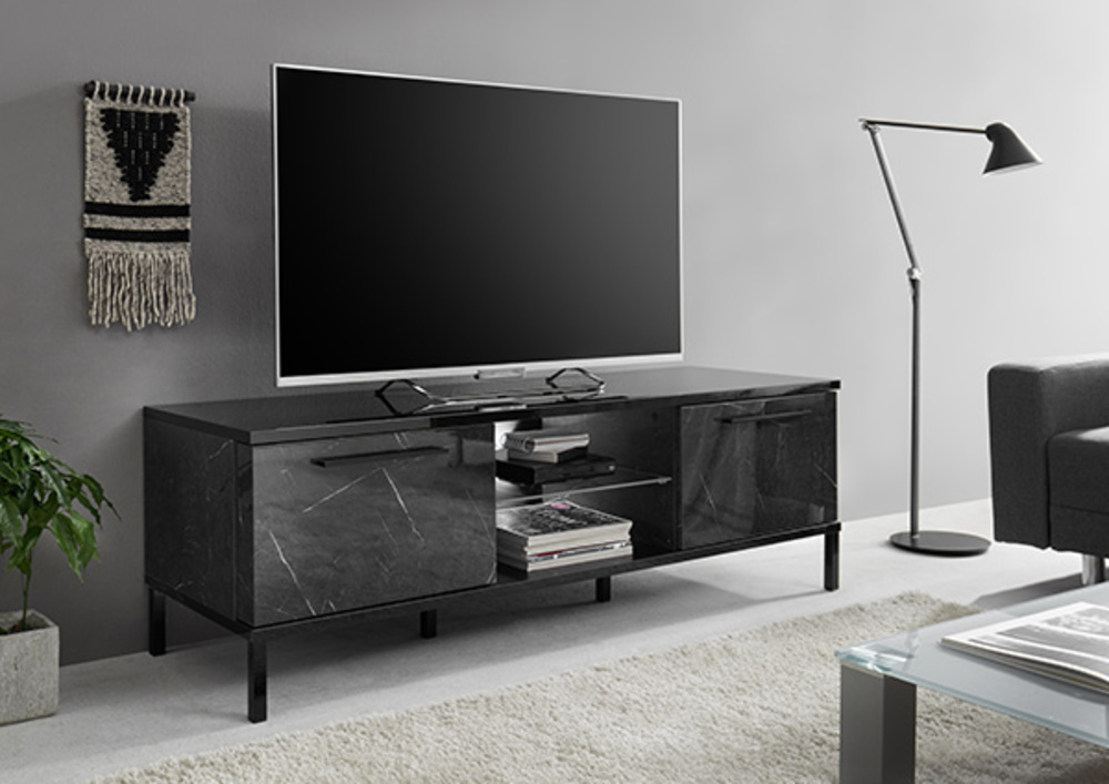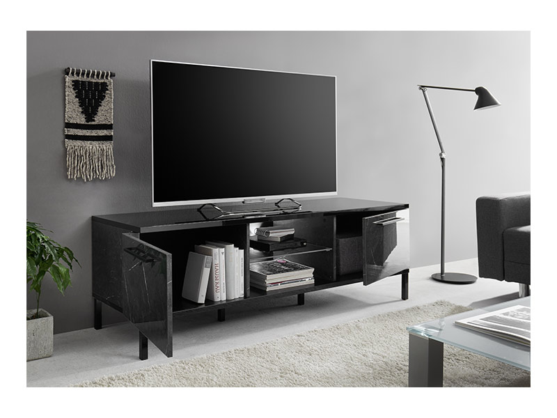 Meuble tv Mango noir brillant marbré