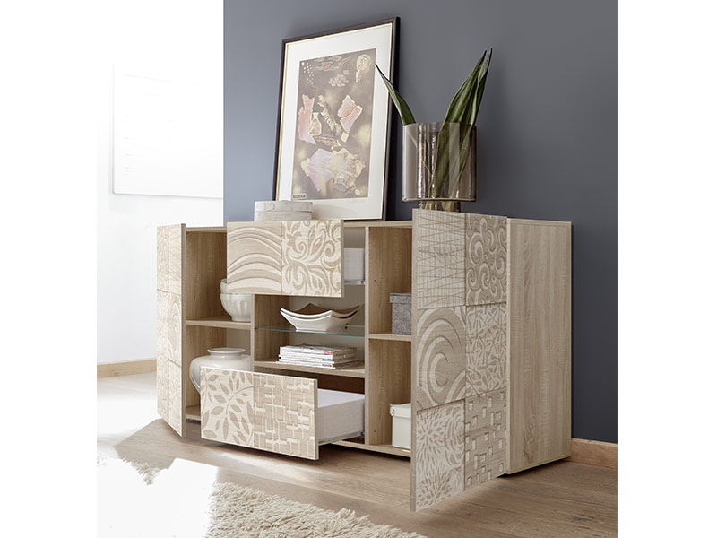 Le bahut 2 portes 2 tiroirs Miranda chêne samoa provient d’Italie et respecte la norme CE. Livré en 2 colis, vous pourrez l’assembler en vous aidant de la notice fournie.